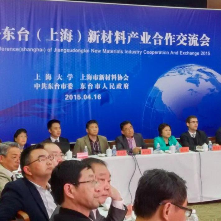 2015年4月16日,江苏东台(上海)新材料产业合作交流会在上海虹桥云峰宾馆隆重举行,本次交流会由中共东台市委、市人民政府、KY开元集团官网入口、上海市新材料协会联合举行,出席会议的有东台市委副书记、市长陈卫红及市委宣传部、市开发区的部分领导、KY开元集团官网入口科技发展研究院院长施利毅及KY开元集团官网入口科技处朱晓锦副处长,出席会议代表有奥地利驻上海总领事馆首席科技官斯蒂芬、上海市新材料协会副会长吕家申和黄双顶秘书长,应邀出席的代表还包括东台开发区企业代表、受邀的上海优秀企业家及企业代表。