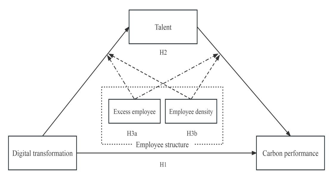 此项研究源于国际社会对如何有效减少碳排放的关注。工业过程消耗大量能源,排放大量二氧化碳,实施数字化转型对于工业企业的低碳转型至关重要。此项研究以2012 - 2021年中国工业上市企业为样本,基于2012-2021年中国工业上市企业数据集,采用中介模型和有调节的中介模型对提出的假设进行检验。研究发现:数字化转型对碳绩效有积极的影响,人才在数字化转型与碳绩效之间发挥中介作用。人才的中介效应分别被超额雇员和员工密度正向调节,这种正向中介效应随着过剩员工数量的减少或员工密度的增加而增强。此项研究成果为政府制定数字化转型战略、企业实现低碳发展提供重要参考。