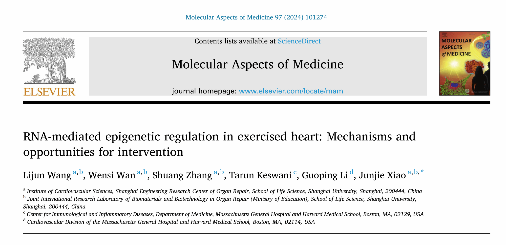 近日,生命科学学院心血管研究所王丽君副教授发表运动锻炼促进心脏健康的RNA表观遗传分子机制及治疗应用的综述论文。论文以“RNA-mediated epigenetic regulation in exercised heart: Mechanisms andopportunities for intervention”为题发表在医学-生化与分子生物学领域著名国际期刊Molecular Aspects of Medicine(https://www.sciencedirect.com/science/article/pii/S0098299724000335)上(JCR分区Q1,杂志影响因子:10.6)。肖俊杰教授为通讯作者,KY开元集团官网入口为论文的第一完成单位。