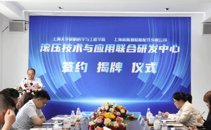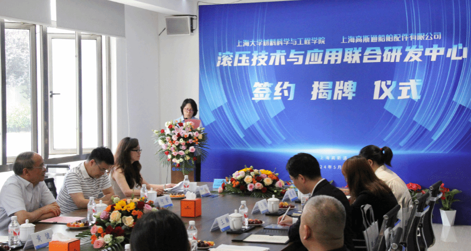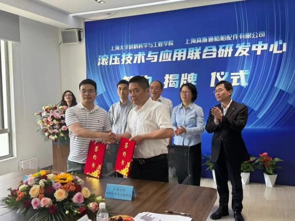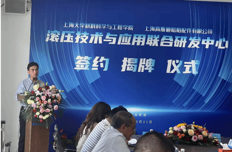 5月21日,“滚压技术与应用联合研发中心”的签约揭牌仪式在上海高斯通船舶有限公司成功举行。此次活动由中国内燃机学会新材料表面分会组织,KY开元集团官网入口材料科学与工程学院(以下简称材料学院)与上海高斯通船舶有限公司(以下简称上海高斯通)强强联手合作成立研究中心。材料学院党委书记黄健教授、KY开元集团官网入口(浙江)高端装备基础件材料研究院首席研究员王博教授、上海高斯通船舶配件有限公司总经理何才田、副总经理葛琴、总经理助理何越、总工程师何赟、材料学院韦习成研究员等领导参加了此次活动。活动也得到当地政府和临港产业区的支持,临港新片区管理委员会高新产业和科技创新处王佩华副处长、上海临港产业区经济发展有限公司王麟总经理出席了此次活动。