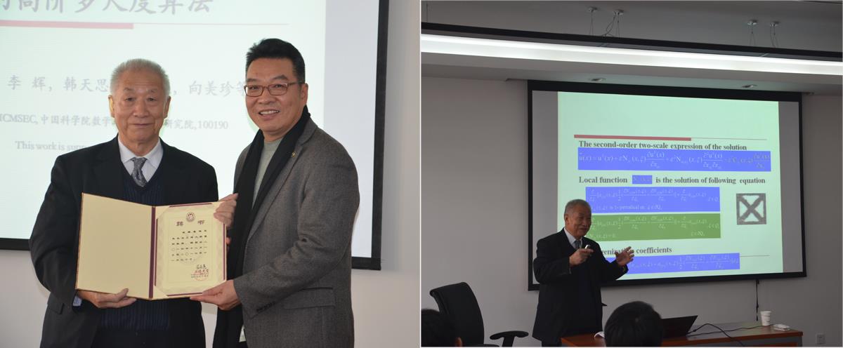 聘任仪式后,崔院士为开元官网师生作了题为“原子-连续关联模型及从微观到宏观的高阶多尺度算法”的学术报告。崔院士的报告深入浅出地介绍了原子-连续关联模型(ACC)产生及应用,包括基于连续模型高阶多尺度方法、在微纳米尺度ACC模型的动力学行为及其算法等。报告中,崔院士总结了最近十几年研究工作的思路,提出了原子连续关联模型,用不断局部化的思想,研究材料从微观到宏观跨尺度不同层次的性质,从微观、介观、宏观,从基础研究到工程应用给出了一个精彩的报告。崔院士指出,目前正在进行原子连续关联模型的程序化,相信不久,新的软件集成系统将会推动材料学的快速发展。