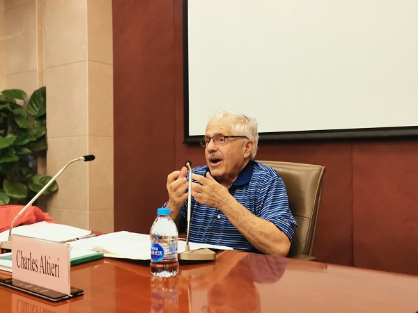 Altieri教授是美国艺术与人文学院院士,当代英语诗歌、诗学研究泰斗,在现当代美国诗歌研究领域成果卓著。他历任美国哲学协会(太平洋海岸)主席,承担文学与哲学国际研究会、美国现代语文协会等执委职务,在国际著名刊物PMLA、Boundary 2、MLQ、Poesis、American Poetry、Contemporary Literature等编辑委员会任职。