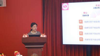 计算机工程与科学学院研究生辅导员王明歌分享了刚刚入选上海市特色工作法的《“三精三早三阶梯”党建引领下就业教育工作法》。详细介绍了面对严峻就业形势,构建“党建引领就业”的育人模式,系统地形成“三阶梯”格局,持之以恒深化党建引领的就业育人工作,为“实施就业优先战略”贡献力量。