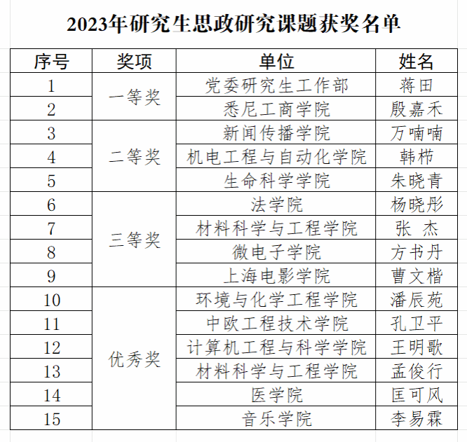 在过去一年中,研究生辅导员们围绕研究生思想政治工作开展了一系列的深入研究,2023年研究生思政研究课题经过专家评审,评选出了一批优秀成果。党委研工部对获奖的15位老师进行集中表彰,为全体研究生辅导员树立榜样,激励大家在研究生思政工作领域持续深耕。