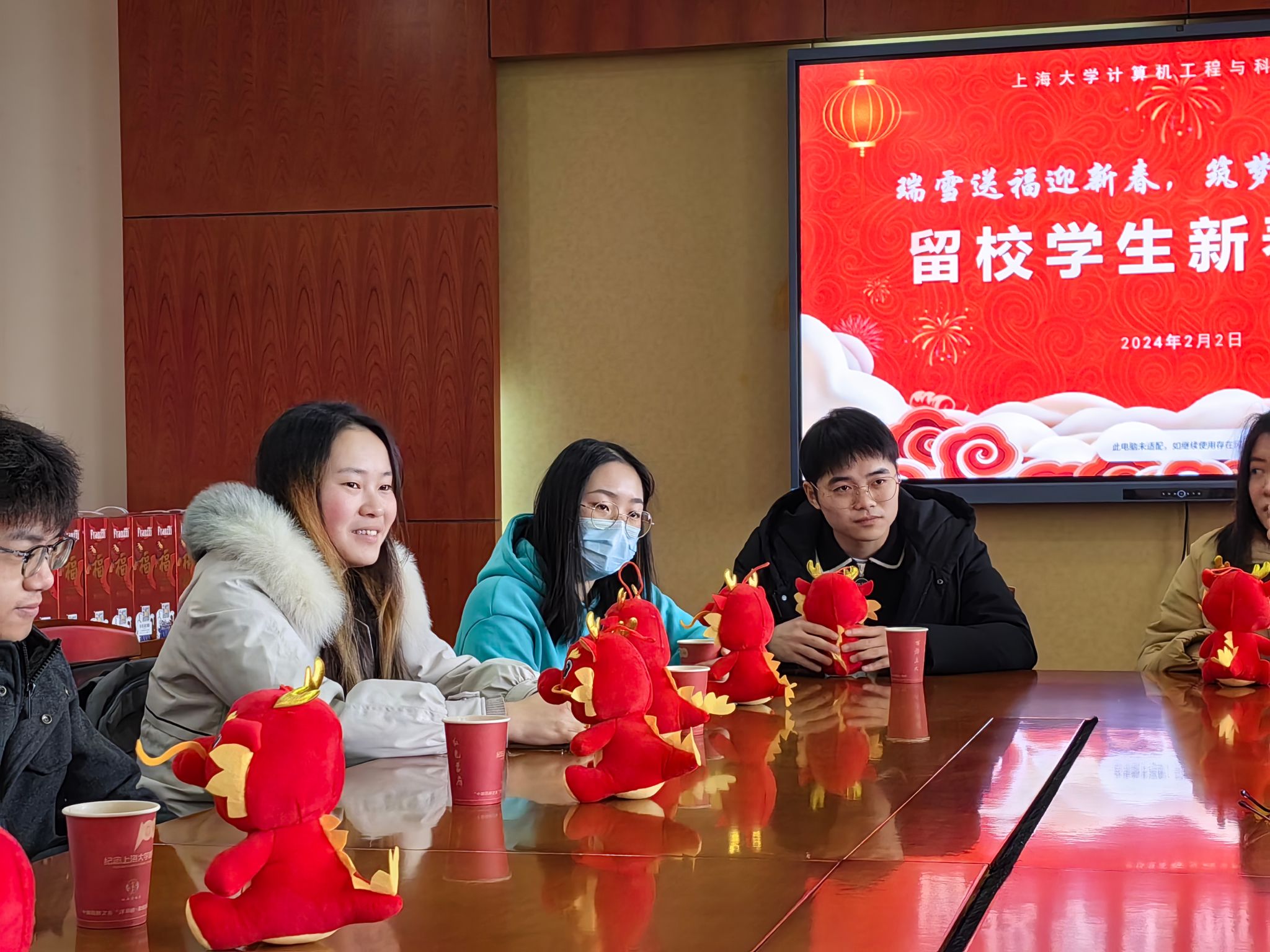 瑞雪送福迎新春,筑梦新程展宏图。2024年2月2日上午,正值北方小年,计算机学院留校学生新春慰问座谈会在1104会议室举行。学院党委书记朱宏涛,党委副书记、院长谢少荣,党委副书记、副院长赖练,副院长骆祥峰,本科生、研究生辅导员以及近20名留校本研同学齐聚一堂,共同迎接佳节的到来。