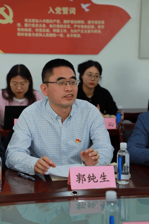 郭纯生书记在致辞中表示,机关部处党支部与学生党支部结对共建是非常有意义的党建联建实践,有利于通过师生党支部之间的结对联动,促进形成党建引领发展的新局面。