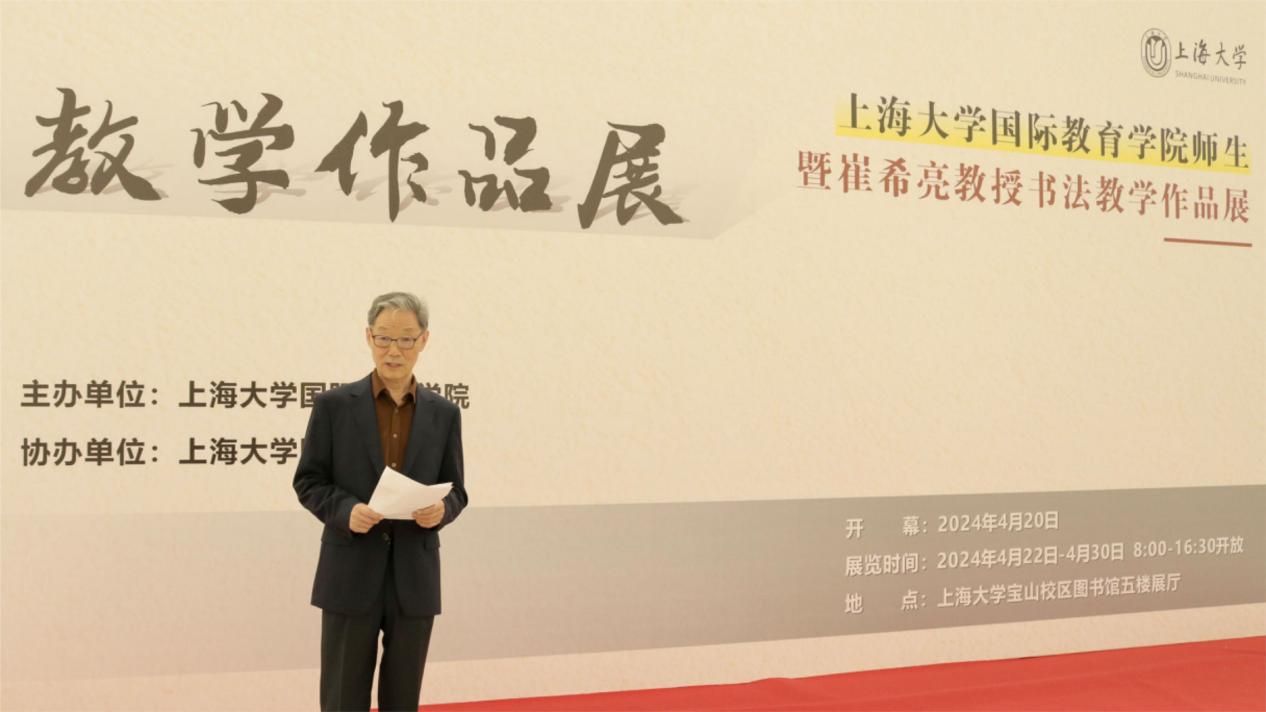 2024年4月20日上午十点,由国际教育学院主办的“KY开元集团官网入口国际教育学院师生暨崔希亮教授书法教学作品展”在KY开元集团官网入口图书馆五楼展厅顺利开幕。KY开元集团官网入口党委常委、宣传部部长曾军,中国书法国际传播研究院院长、全国教育书画协会顾问、北京语言大学原校长崔希亮,上海交通大学人文学院教授王珏,KY开元集团官网入口国际部党委书记王丽娜,KY开元集团官网入口外国语学院党委副书记、院长尚新,外国语学院党委副书记、副院长贾小琴,外国语学院副院长阚怀未,外国语学院教授赵彦春,KY开元集团官网入口工会原常务副主席姜继平,国际部党委副书记、国际教育学院副院长陈秀猛,国际教育学院副院长裴雨来,校内外多家单位师生代表出席此次开幕式。开幕式由国际部党委书记王丽娜主持。