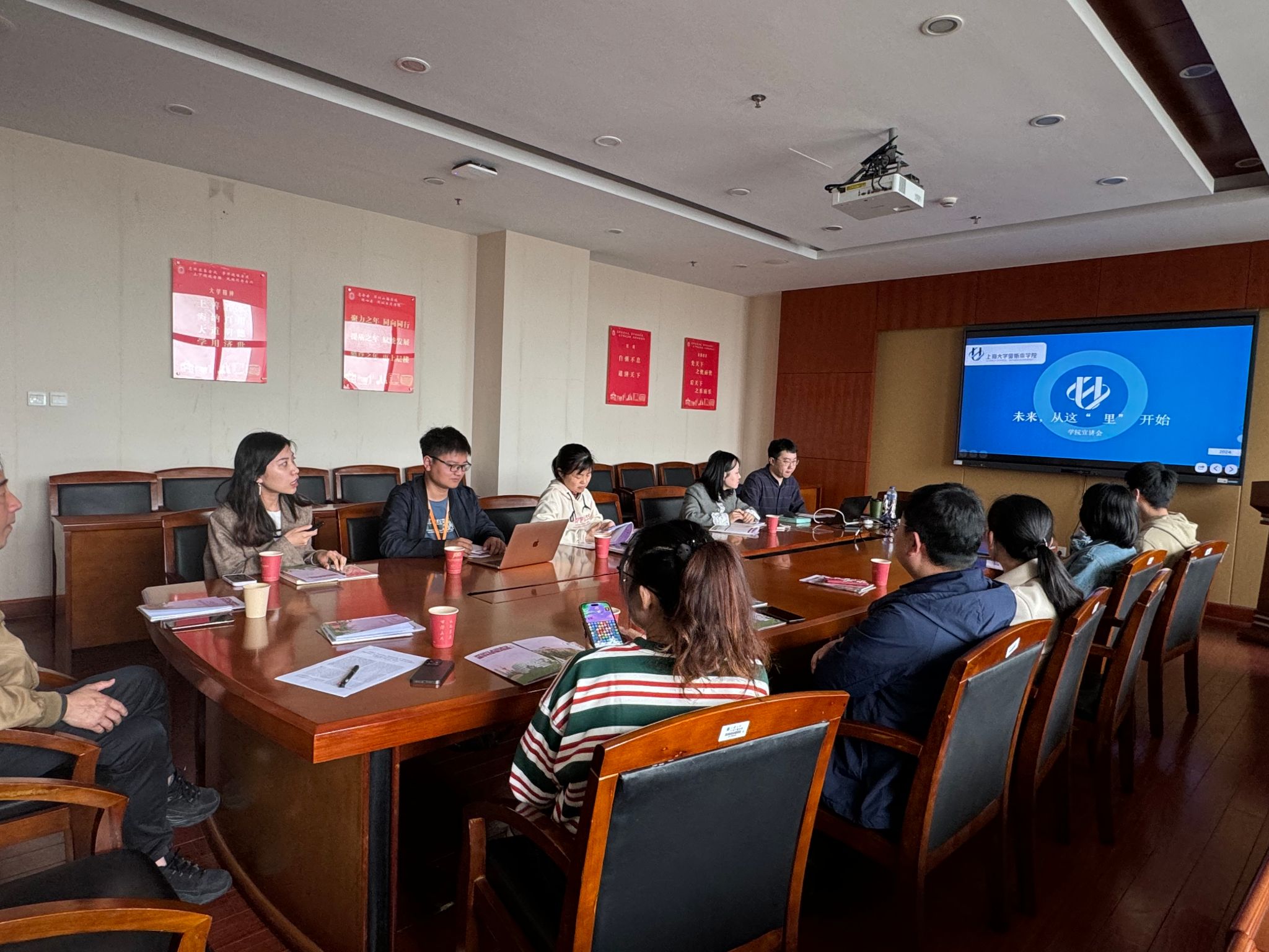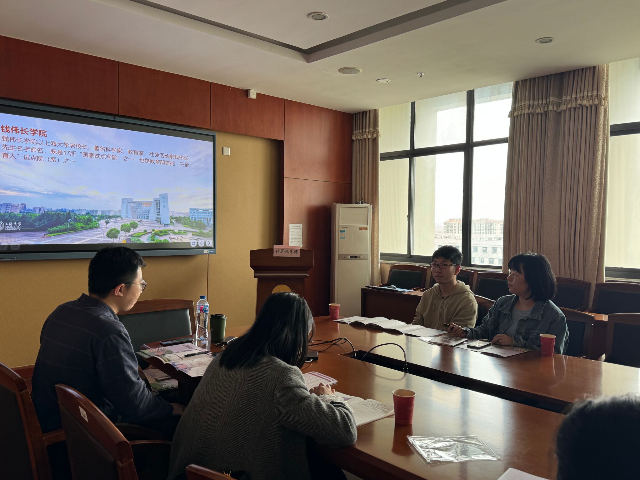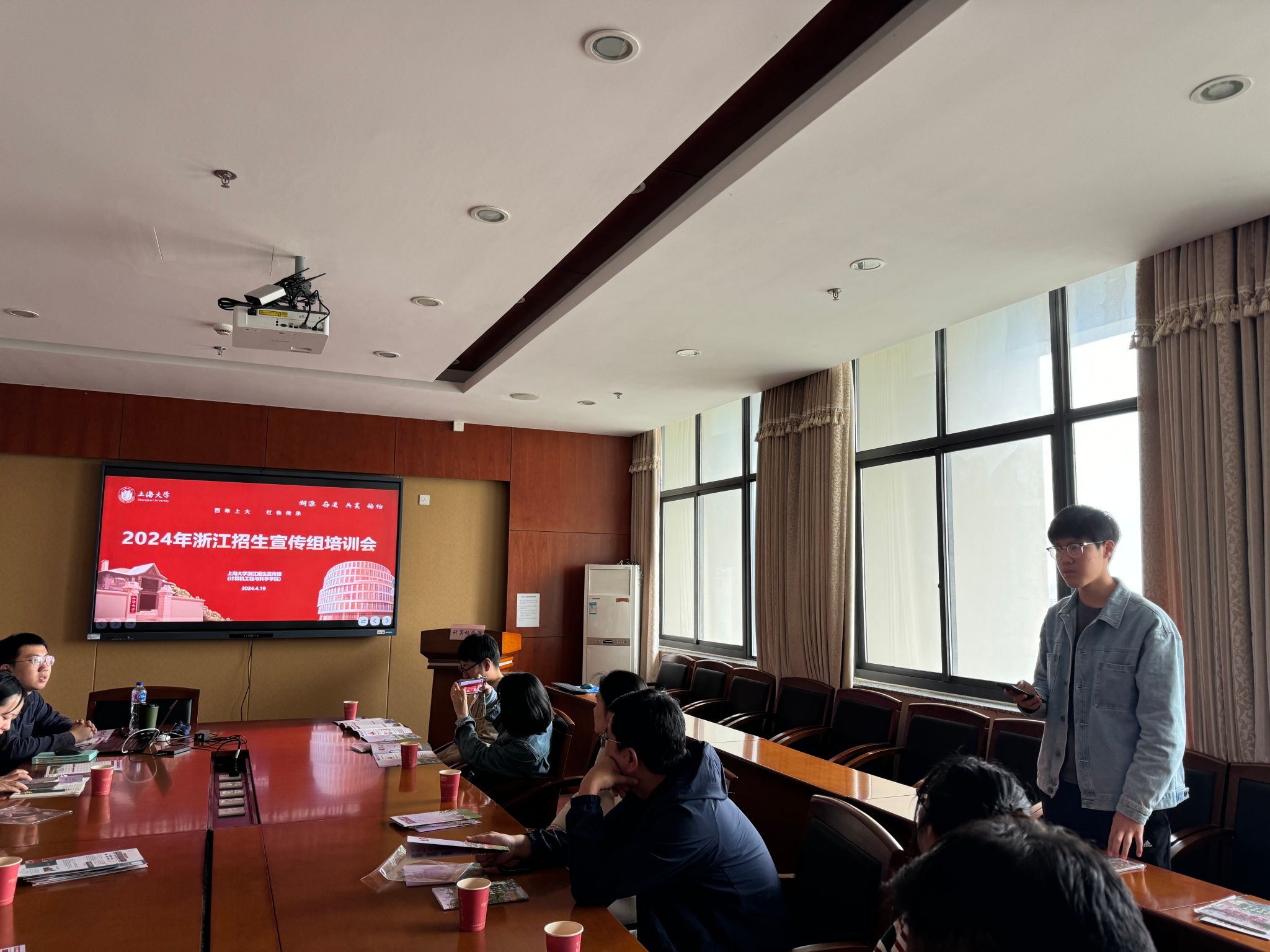 4月19日下午,2024年浙江省招生宣传培训会在计算机大楼1104会议室召开。浙江招生宣传组副组长、计算机学院党委副书记、副院长赖练,钱伟长学院办公室主任苏英,悉尼工商学院团委副书记胡宇轩,里斯本学院专业教师胡鑫源,中欧工程技术学院专业教师陈伦德,第四届招生宣传大使王思昙及浙江招生宣传组成员等出席。