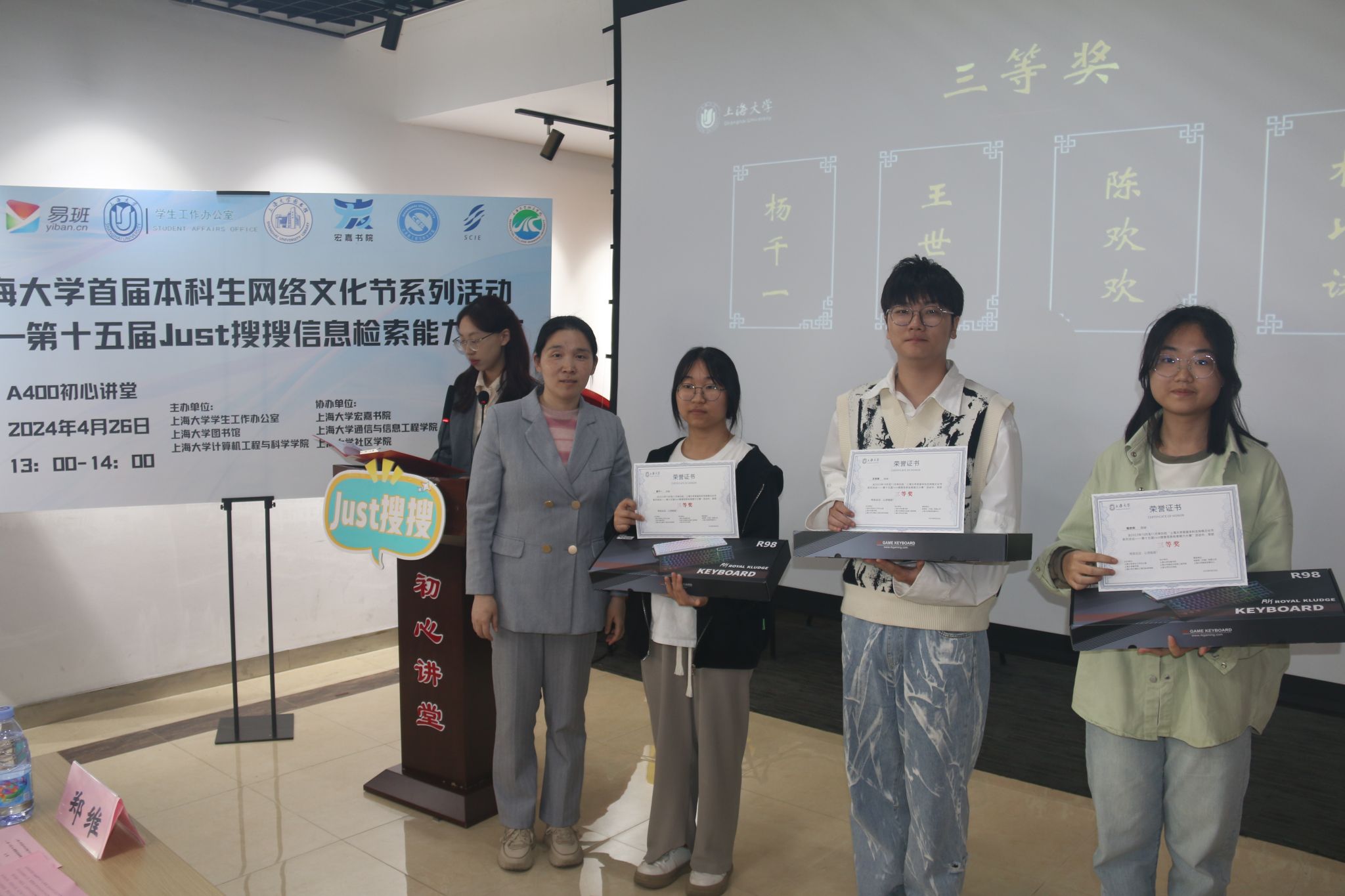KY开元集团官网入口首届本科生网络文化节系列活动——第15届Just搜搜信息检索能力大赛顺利举办。本届活动由埃森哲(中国)有限公司、KY开元集团官网入口易班发展中心赞助,校学生工作办公室、校图书馆、计算机工程与科学学院主办,宏嘉书院、通信与信息工程学院、社区学院协办,面向全校本研同学开展。大赛历经赛前宣传、线上选拔、线下比赛、闭幕式等环节,现圆满闭幕。