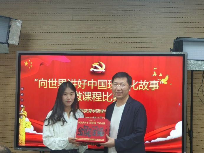 为庆祝中华人民共和国成立75周年,深入学习宣传贯彻习近平新时代中国特色社会主义思想,全面贯彻落实党的二十大精神,鼓励研究生通过微课的方式生动呈现中国式现代化故事,国际教育学院汉语国际教育学生党支部于近日面向学院研究生开展了“向世界讲好中国式现代化故事”微课程比赛。党委研工部副部长周轶,国际部党委副书记、国际教育学院副院长陈秀猛,国际教育学院副院长张新玲担任比赛评委,辅导员孙先君主持。