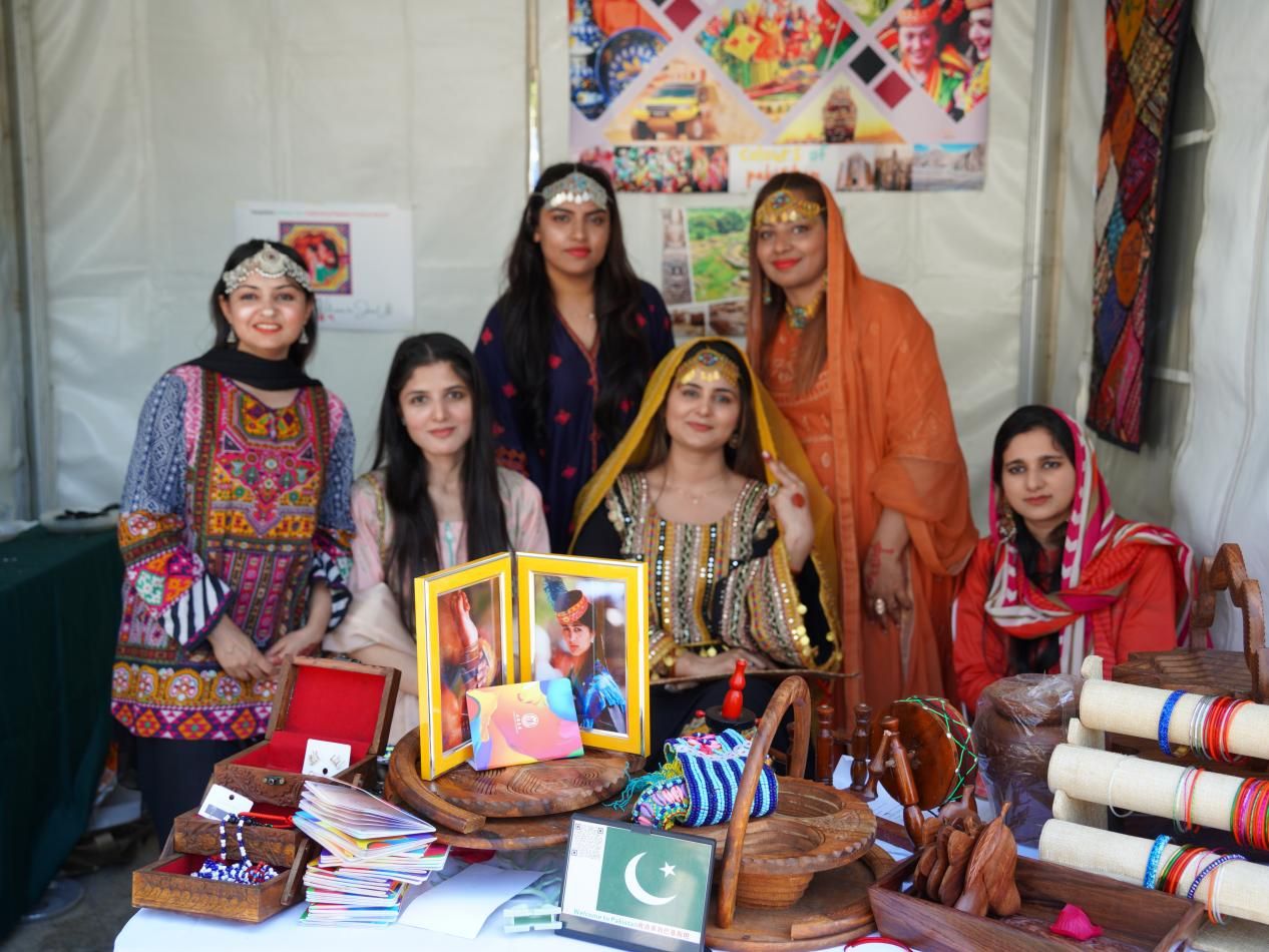 展台边人头攒动,气氛火热。本次国际文化风情展涵盖了36个国家的国家展台,各个展台通过海报、展板、手工艺品等形式,对本国的历史文化与民族风情进行了充分展示。