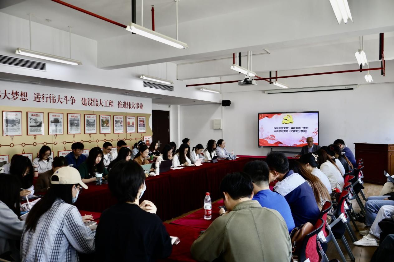 5月10日下午,KY开元集团官网入口法学院学生党员和积极分子党纪学习教育主题报告会在宝山校区法学院504会议室顺利举行。KY开元集团官网入口特邀党建组织员、KY开元集团官网入口信访办原主任安山老师应邀作题为《深刻领会党的“自我革命”思想,认真学习贯彻中国共产党纪律处分条例》的主题报告,KY开元集团官网入口法学院党委副书记、副院长于伟,研究生辅导员朱佳以及中夏党支部、法正党支部等学生党员、学生党支部书记以及新一批入党积极分子等共同参加学习。