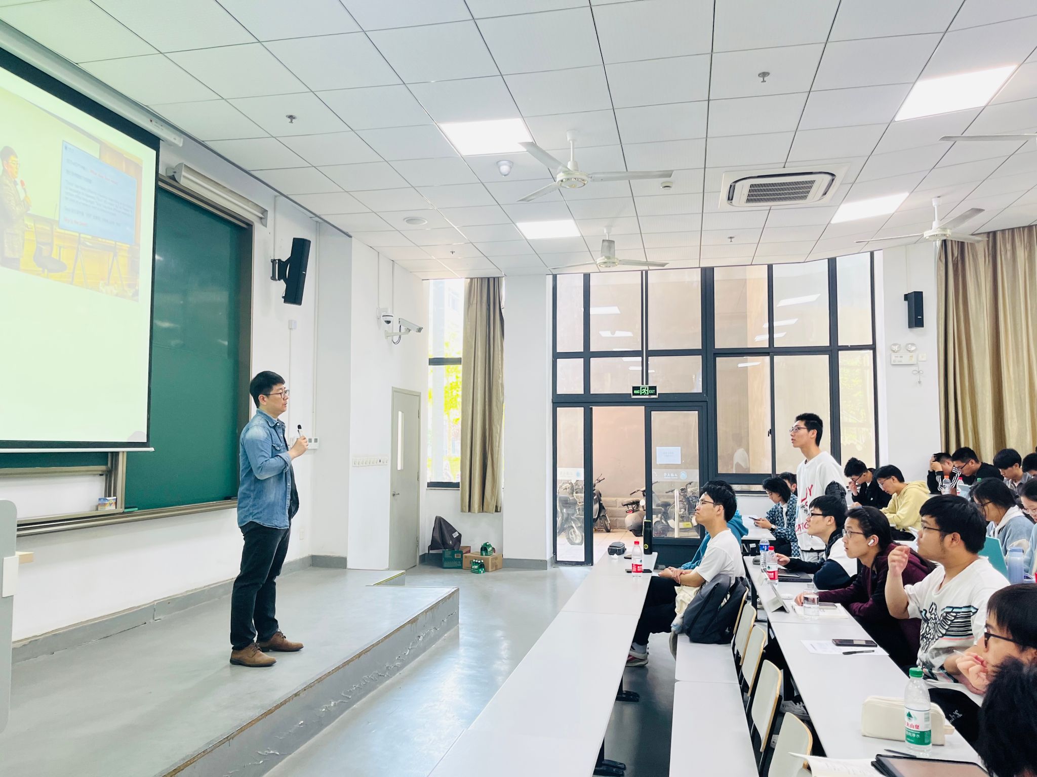 活动伊始,武星老师以如今备受瞩目的AI大模型之一"Sora"作为引子,向同学们展示了当前文生视频等AIGC工具的快速发展和带给世界的震撼猛烈。武老师的讲解既富有硬核的专业知识,又风趣幽默,同时,他以自身在相关领域的科研进展为例,介绍了AI视觉识别、文义分析机器人等前沿研究议题和实践成果。此外,他还就中国GPU算力被“卡脖子”、大模型训练遭受阻碍等现状进行了深入剖析。