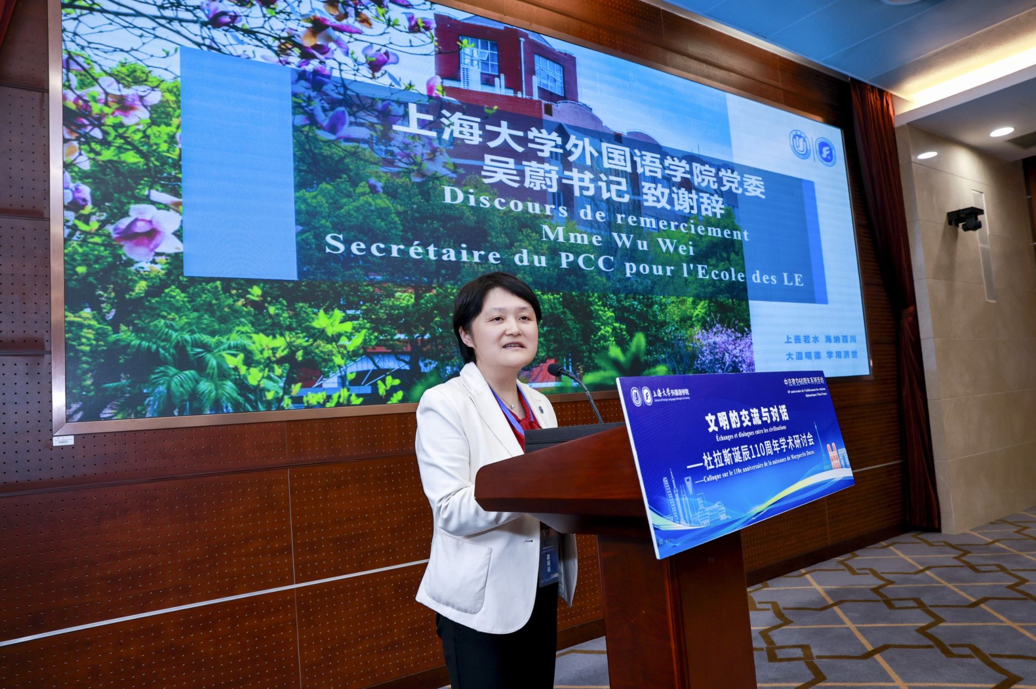 5月12日,“文明的交流与对话——杜拉斯诞辰110周年学术研讨会”在KY开元集团官网入口成功举办。此次会议由KY开元集团官网入口外国语学院、上海市外文学会主办,KY开元集团官网入口法国文学与翻译研究中心承办,中信出版•大方给予了大力支持。出席本次会议的领导和嘉宾有:KY开元集团官网入口副校长于雪梅教授,上海外国语大学原校长、教育部法语教指委主任委员、外指委副主任委员曹德明教授,全国政协常委、KY开元集团官网入口特聘教授、教育部法语教指委副主任委员户思社教授,北京大学教授、教育部法语教指委副主任委员、法国文学著名学者杨国政教授,华东师范大学教授、思勉人文高等研究院院长、国务院学位委员会外语学科评议组成员、教育部法语教指委委员袁筱一教授,中信出版集团副总编辑蔡欣女士,北京外国语大学教授、教育部法语教指委委员、法国文学著名学者车琳教授,南京大学教授、当代外国文学与文化研究中心副主任、杜拉斯研究著名学者黄荭教授,法国波尔多-蒙田大学教授、Modernité主编、法国文学著名学者Eric BENOIT教授,KY开元集团官网入口中欧学院法方院长Fabien PFAENDER先生,KY开元集团官网入口中欧学院法方副院长Laure MINASSIAN女士,KY开元集团官网入口外国语学院党委书记吴蔚,党委副书记、院长尚新教授,党委副书记、副院长贾小琴,副院长戴朝晖,副院长唐青叶教授,法语系主任王文新教授。来自苏州大学等多所兄弟院校、KY开元集团官网入口外国语学院法语专业首届硕士生和部分本科生、KY开元集团官网入口中欧学院部分师生60余人共同参与此次研讨会。