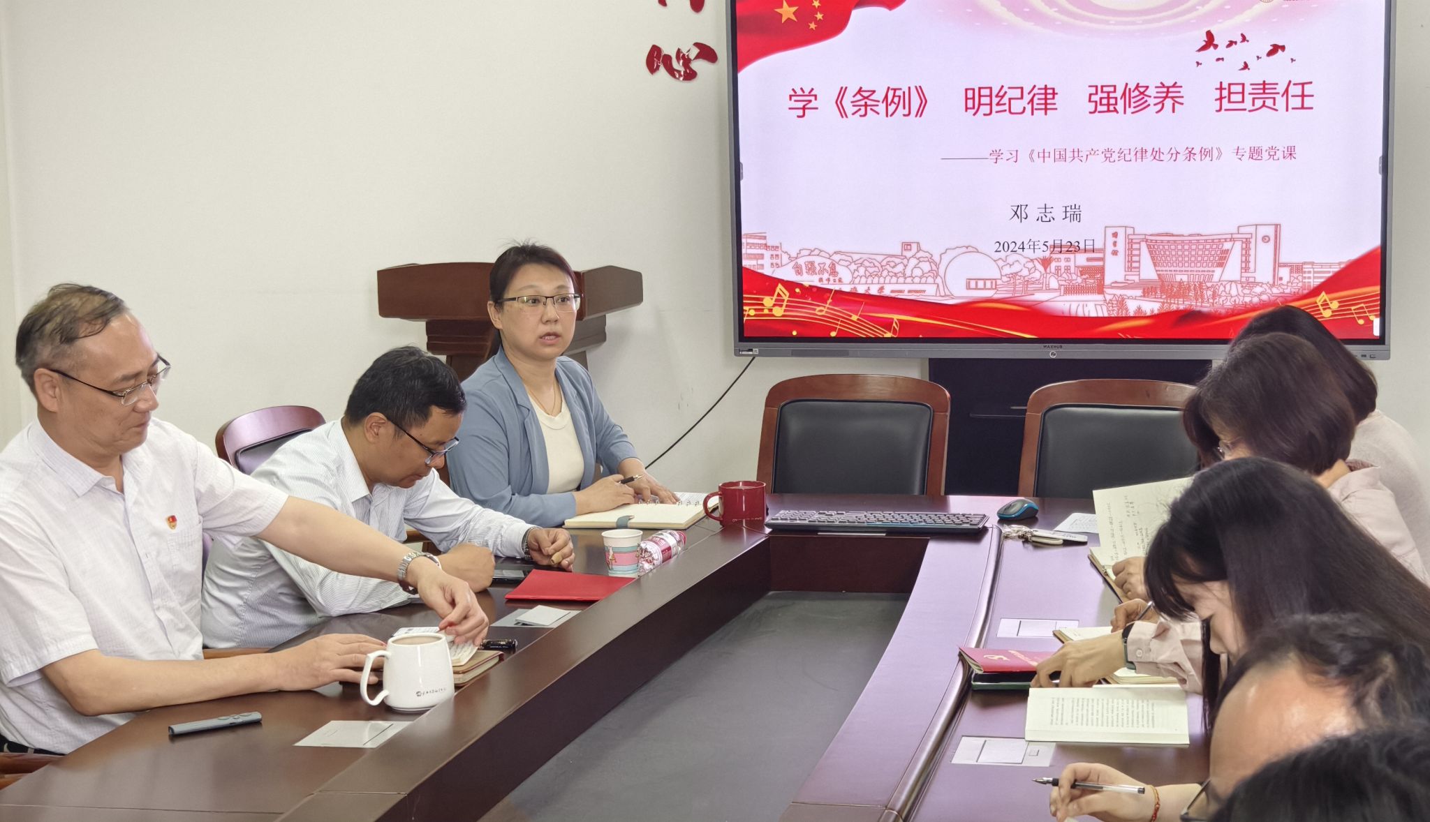 邓书记指出,学纪是手段、知纪靠积累、明纪是升华、守纪是目的,希望学院全体党员在认认真真学原文的基础上,结合案例学、拔高要求学、知行合一学,以提高党性修养为路径、以强化理想信念为抓手,真正入心入脑,从内心深处真正自觉尊崇、敬畏党规党纪,从灵魂深处提高遵纪守纪自觉性和主动性,在明纪守纪上发挥模范作用,真正做到受警醒、明底线、知敬畏。