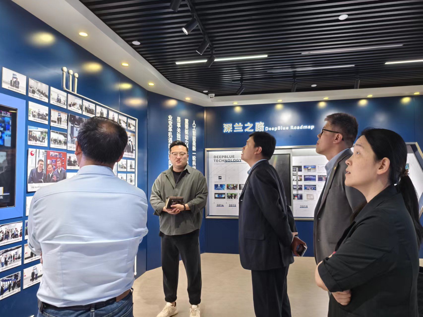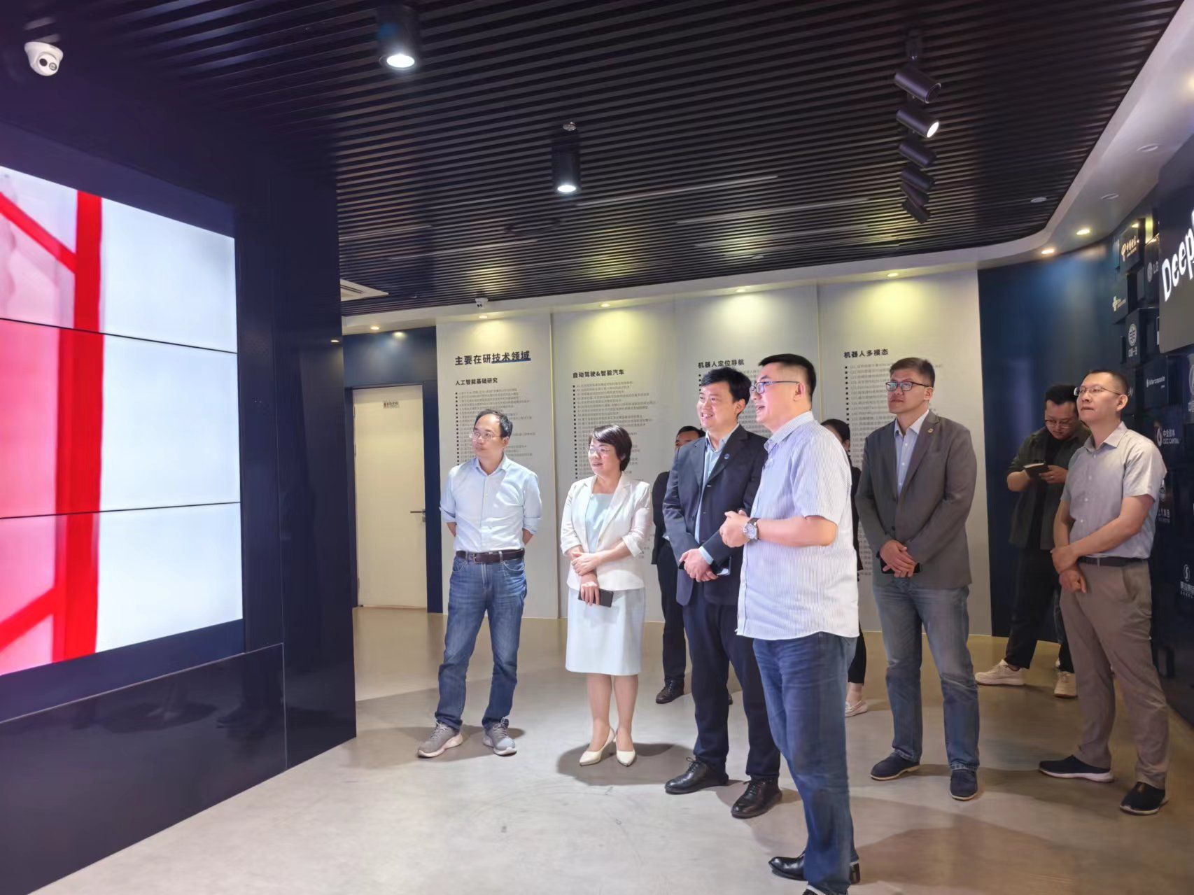 深兰科技创始人、董事长陈海波,深兰科技联合创始人、深兰教育创始人吴昊泽与深兰教育执行总裁陈翰宇等接待,董事长陈海波介绍了深兰科技展厅中算法研究、智能汽车设计制造、生物识别、AI基因等领域,直观地展示了落地产品与科技成果。