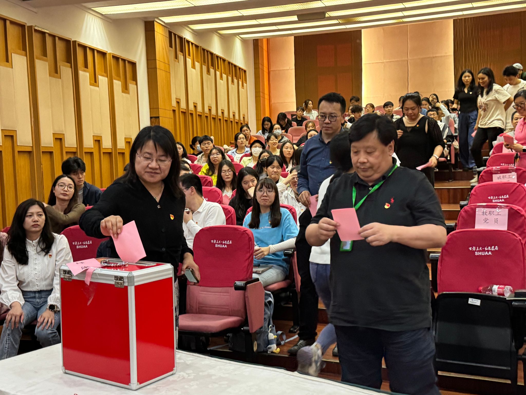 在庄严的国歌中,开启本次大会,各项议程有条不紊地展开。会议伊始,冯玉鑫宣读了校党委对代表候选人预备人选资格审查的批复。随后,他通报了经济学院代表候选人推荐的总体情况。学院党委组织员范春艳宣读选举办法(草案)并获通过。经济学院出席中共KY开元集团官网入口第四次代表大会的代表候选人名单,经与会党员认真审议和充分讨论后通过。接着,大会提出了总监票人和监票人名单,并经过表决通过。在选举环节,刘康兵同志担任总监票人,主持了选举工作。最终,根据选举结果,冯玉鑫、殷凤、高韫欢、谭静(按姓氏笔画为序)四位同志当选为经济学院出席中共KY开元集团官网入口第四次代表大会的代表,按照程序要求,选举结果将上报校党委批准。大会完成各项议程在雄壮的国际歌中胜利闭幕。