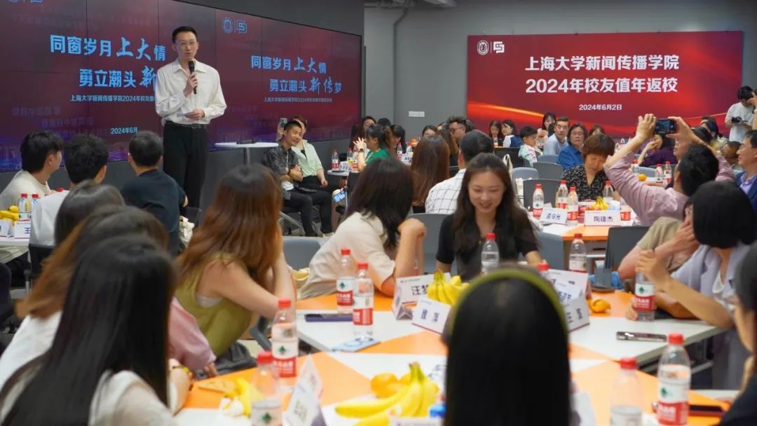 学院党委副书记、院长严三九向各位校友介绍了学院近年来的发展情况。学院在“双共建”平台上,发挥平台优势,集聚多方资源,推进学院高水平学科建设。近年来,学院积极引进师资人才,培育一流课程,建设基础设施,形成了较为完备的人才培养体系。学院也将明确人才培养目标,努力建设立足上海、服务国家、放眼全球、特色显著、引领前沿的世界一流新闻传播学院。严三九院长也对各位校友一直以来的关心、支持和帮助表示感谢。