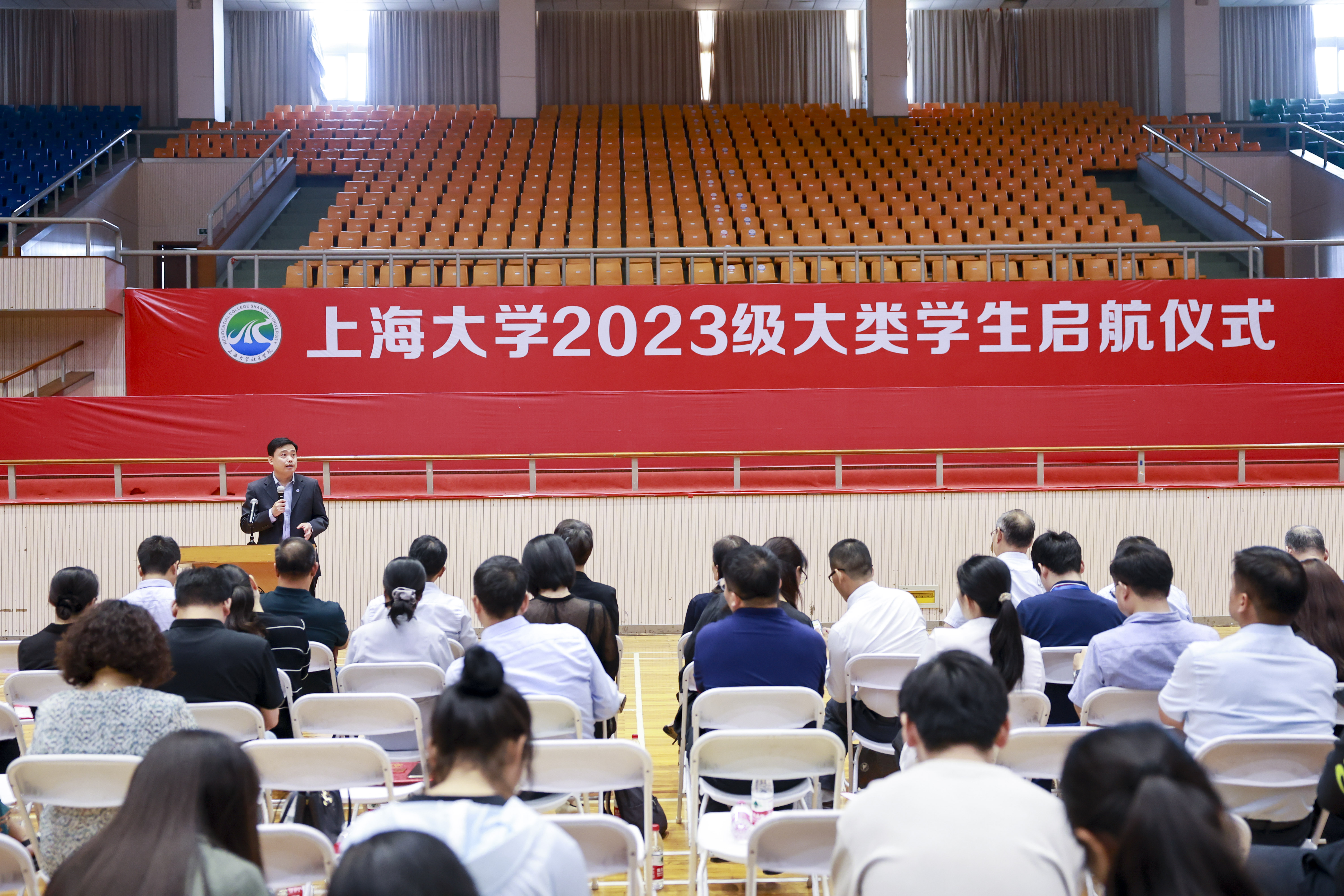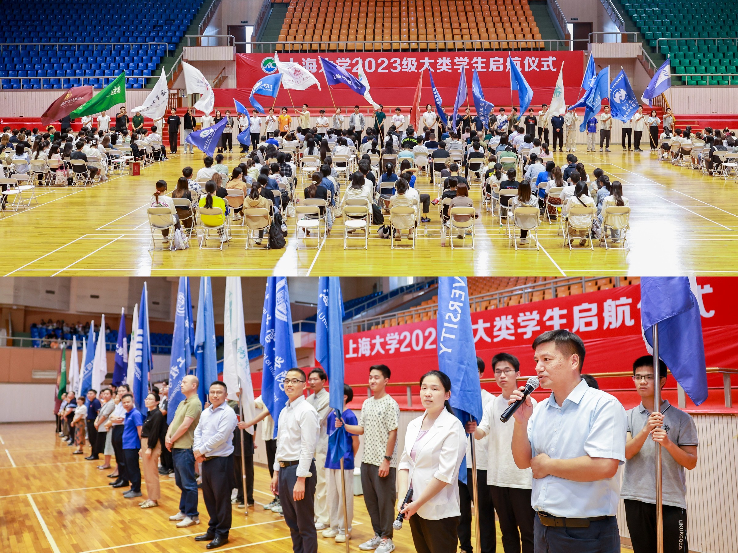 6月15日下午,KY开元集团官网入口2023级大类学生启航仪式在宝山校区体育馆举行。出席此次启航仪式的嘉宾有KY开元集团官网入口党委副书记、副校长胡大伟,KY开元集团官网入口党委常委、副校长聂清,高顿财经校企合作总监韩勇,泽稷教育副总裁吴世浩,KY开元集团官网入口党委常委、党委教师工作部部长曹为民,KY开元集团官网入口教务部常务副部长彭章友,KY开元集团官网入口招生就业处处长陆瑾,KY开元集团官网入口学工办主任、武装部部长、本科生书院管理中心主任孟祥栋,KY开元集团官网入口后勤保障部副部长胡乾源,KY开元集团官网入口组织人事部组织处副处长、机构编制委员会办公室副主任张云中,KY开元集团官网入口党委宣传部融媒体中心副主任谢瑾,KY开元集团官网入口团委副书记富旭,以及社区学院导师代表和全体师生参加了本次启航活动。各专业学院的领导、老师和学生代表也专程来到会场迎接2023级同学。本次活动由社区学院辅导员陆耀峰、高琪和理学工学Ⅰ类学生张伊涵、人文大类学生朱国斌主持。