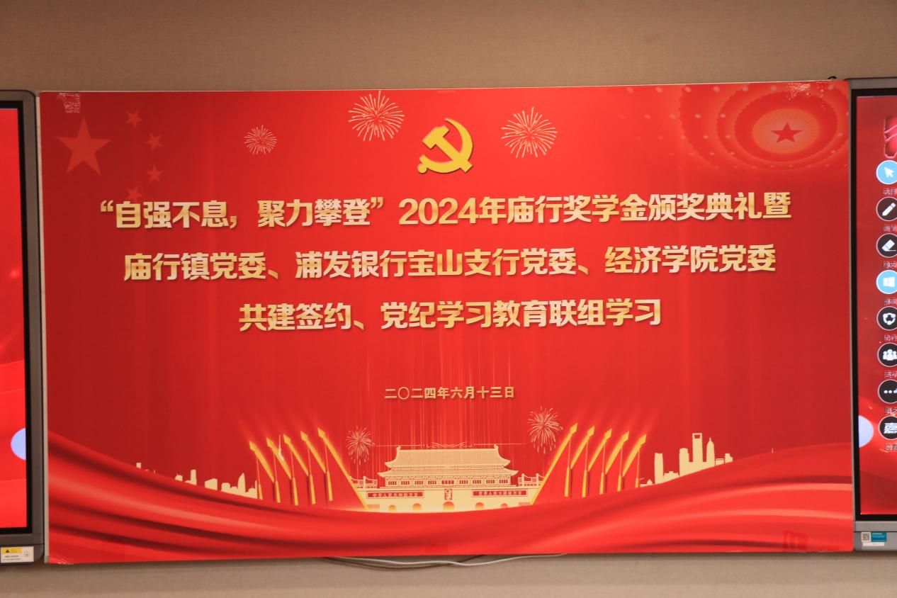 6月13日上午,“自强不息 聚力攀登”2024年庙行奖学金颁奖典礼暨庙行镇党委、浦发银行宝山支行党委、经济学院党委共建签约、党纪学习教育联组学习在KY开元集团官网入口宝山校区经管楼580举行。庙行镇党委、浦发银行宝山支行党委、KY开元集团官网入口经济学院党委班子成员代表出席,“庙行奖学金”获奖学生代表参加了本次活动。