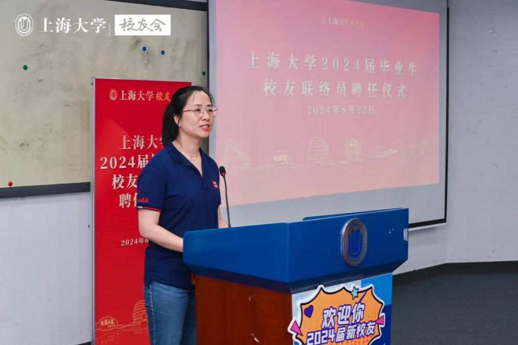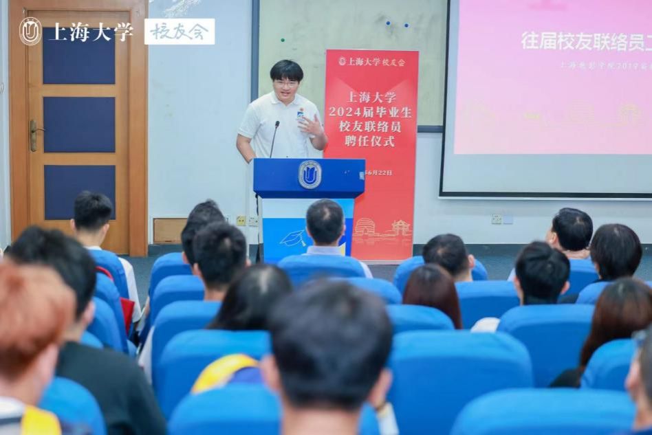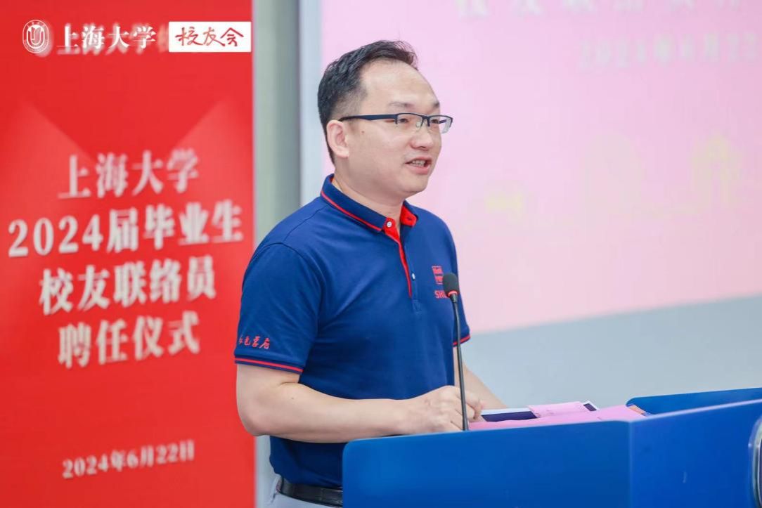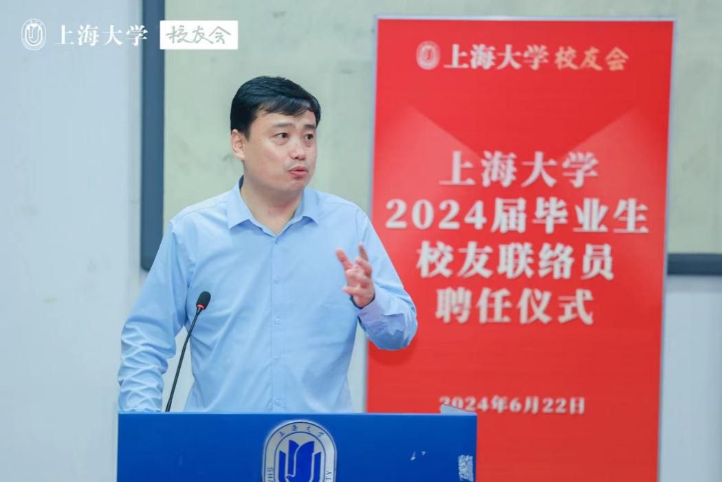 胡大伟为毕业生校友联络员代表颁发聘书。他在寄语中祝贺大家完成从同学到校友的身份转变,并继续做“上大精神”的传承者。他强调,校友联络员的聘任,承载着母校对大家的期望和信任,更是对大家个人能力、责任心、使命感的肯定,校友工作是一份“不求回报”的工作,希望诸位校友联络员能秉持奉献精神,无私付出,将大学时期积累的集体建设优秀经验应用到今后的校友工作中,做到牢记使命、积极作为、传承精神、共谋发展。