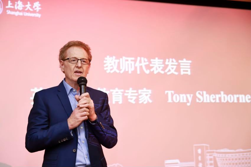 英国知名科学教育专家、第一节课授课教师Tony Sherborne,KY开元集团官网入口附属嘉定实验学校的孟金花老师分别代表教师和学员发言。
