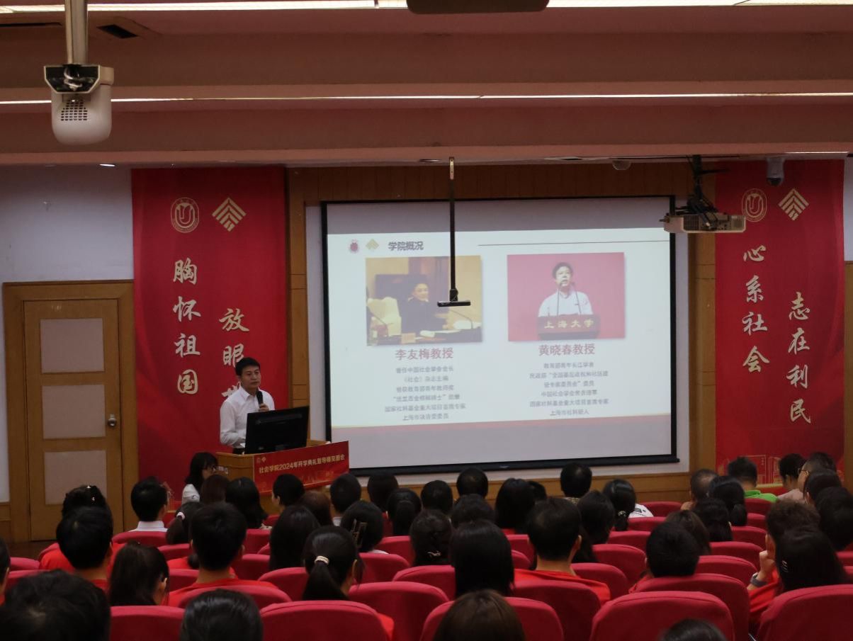 云天收夏色,木叶动秋声。初秋的校园迎来一张张朝气蓬勃的笑脸,充满着新的生机。8月23日上午8点30分,KY开元集团官网入口社会学院2024年新生开学典礼暨导师见面会在KY开元集团官网入口宝山校区J楼103准时召开。会议由2024级社会工作专业硕士研究生庄诗珩主持,社会学院学科带头人、KY开元集团官网入口“伟长学者”特级岗教授李友梅,社会学院党委书记杨锃,社会学院党委副书记、副院长张乃琴,社会学院副院长袁浩,社会学院副院长盛智明,学院各系所领导、各专业导师以及2024级本硕博全体新生共同出席本次会议。
