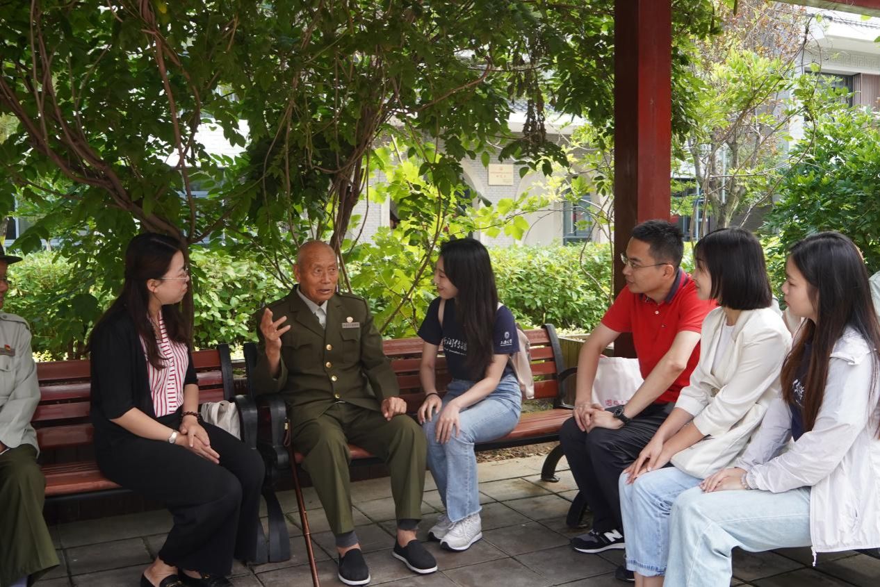 在延安市八一敬老院,团队成员与百岁老战士们面对面交流,共同缅怀那段烽火连天的岁月。“我当时身上已经有两颗子弹,但还是爬起来继续打。”他们缓缓讲述着战争年代的英勇与牺牲、对当时时势的追忆和感慨,每一句话语都如同跨越时空的桥梁,将那段刻骨铭心的历史画卷徐徐展开,在场的每一位成员都深深为之动容。八一敬老院还向实践团队赠送了珍贵的自编书籍——《革命老战士口述历史》。这本凝聚了多位革命老战士心血的回忆录,更激发了学生内心深处的爱国情怀和对革命先烈的无限敬仰。