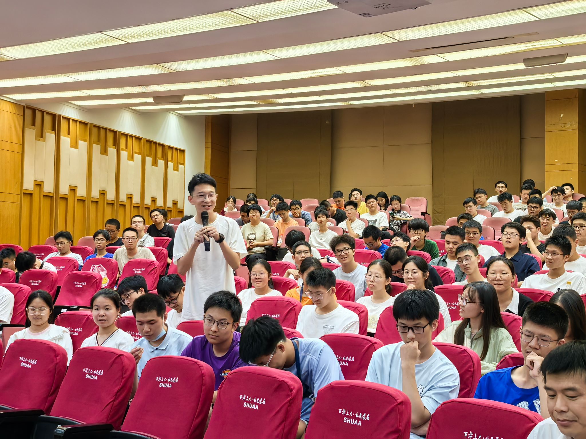 交流伊始,张统一院士以寄语上大学子从事材料基因组研究的“中国梦”引入,强调自信的重要性,鼓励每一位青年学子“要坚信自己了不起!”,希望每位学子皆能自强不息、体魄强健,保持身体健康,正确面对人生中的起伏。随后,张院士强调要贯彻“AI+专业”,即将人工智能与专业知识学习相结合,并以Chat GPT为例,通过对Chat—自然语言、G—Generative(生成式)、P--Pre-trained(预训练)、T—Transformer(模型)的内涵的详细介绍,结合自身不断Pre-training自己来学习AI 的经历,突出了要将AI人工智能融入力学、材料等科研的重要性。 “Attention is all you need”,张院士强调做事情要全神贯注、精益求精,并鼓励学术面前人人平等,谨记教学相长。最后,张院士结合自身求学、教学及研究经历,叮嘱同学们生逢盛世,要更加积极踊跃提出更加创造性的想法,并付诸实践、行胜于言。
