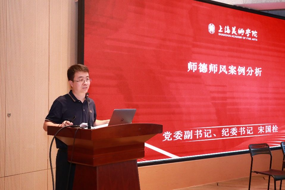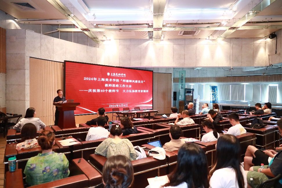 为深入学习贯彻党的二十大和二十届二中、三中全会精神,在迎接第40个教师节之际,KY开元集团官网入口上海美术学院以“大力弘扬教育家精神,加快建设教育强国”为主题,于9月6日上午开展2024年“师德师风建设月”活动暨教师思政工作会议。会议由学院党委副书记、纪委书记宋国栓主持,学院党政班子成员、各系部教师代表、新老教师结对代表等共计60余人参加。