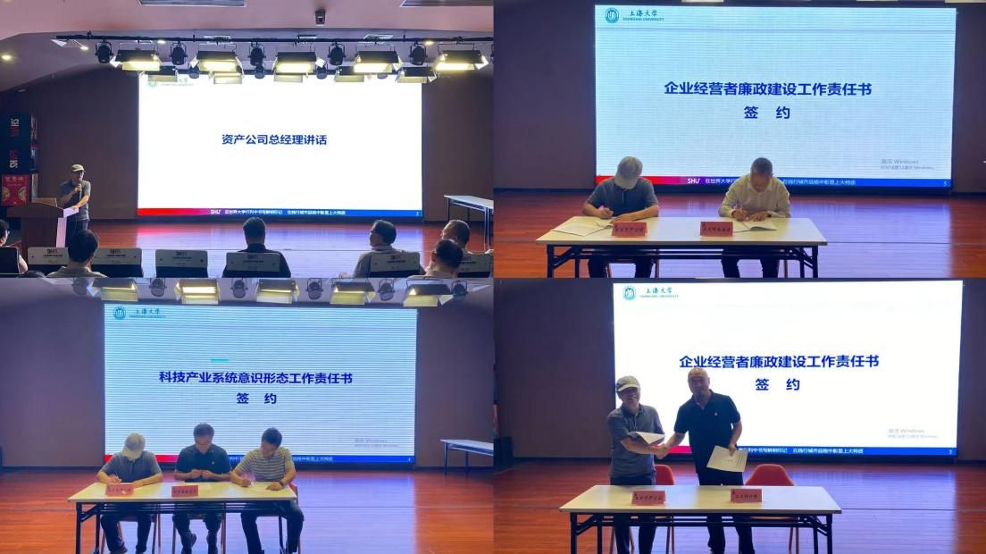 科产系统党委与资产公司签订了《科技产业系统意识形态工作责任书》,资产公司与科技园区和上大设计院签订了《上海上大资产经营管理有限公司全资及控股企业经营者廉政建设工作责任书》。