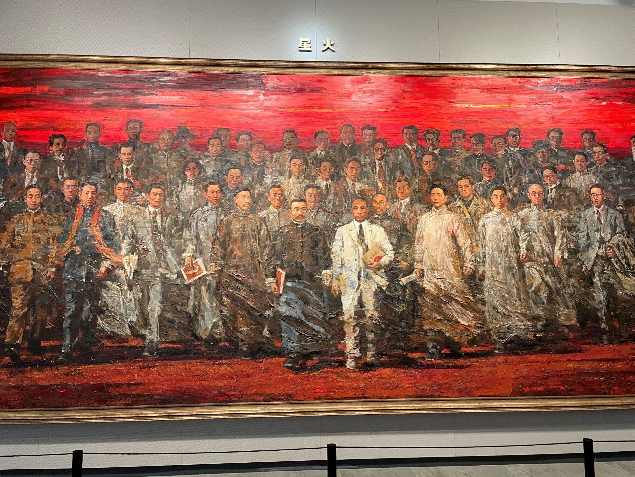 第三部分的主要内容是中国共产党早期组织的成立以及开展工人运动和宣传马克思主义思想。党员们在“南陈北李,相约建党”雕像和《星火》油画前驻足瞻仰,对中国共产党早期领导人的精神气象与人格风范表达最崇高的敬意。
