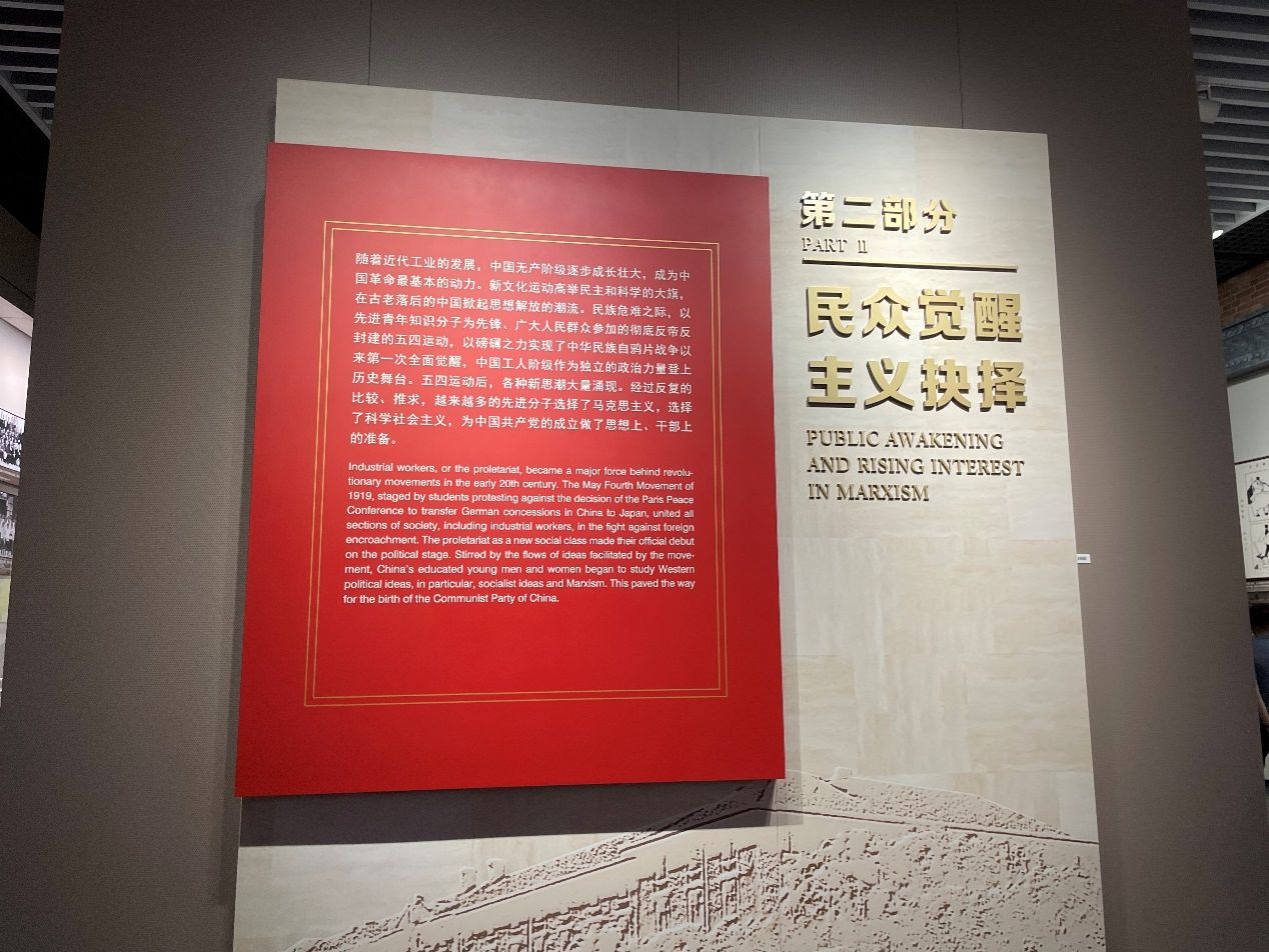 该展览分为五个部分,分别是“前仆后继,救亡图存”“民众觉醒,主义抉择”“早期组织,星火初燃”“开天辟地,日出东方”“砥砺前行,光辉历程”。