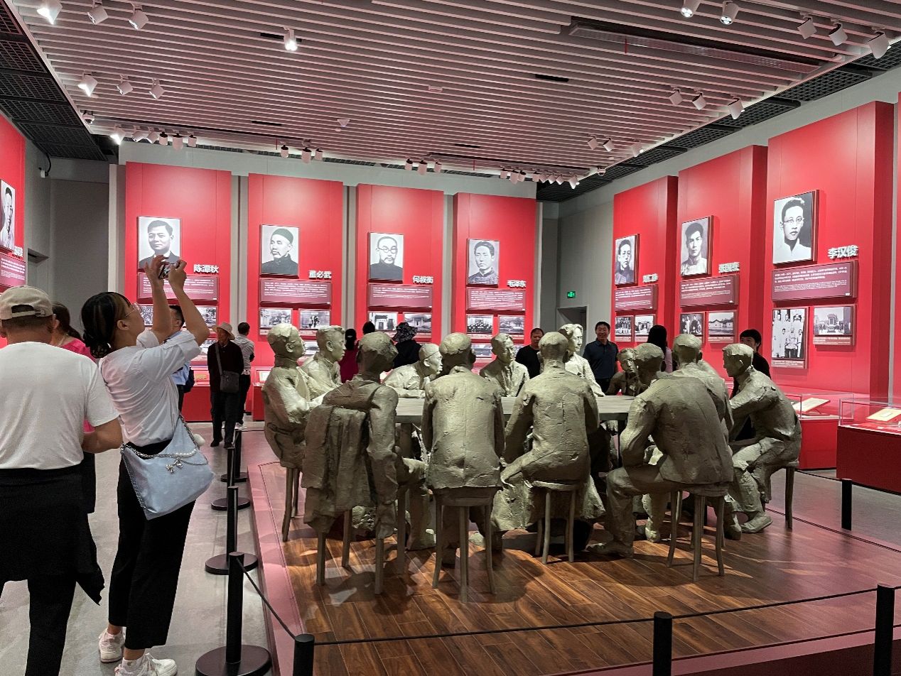 宣誓结束之后,全体新生党员步入庄严的中共一大纪念馆,参观“伟大的开端—中国共产党创建历史陈列”主题展览馆,回顾中国共产党百年奋斗的艰辛历程,深刻体悟伟大建党精神。党员们驻足于一件件展品前,仔细观看,通过一份份珍贵厚重的文物史料,仿佛回到了那个风云激荡的峥嵘岁月,新时代的中国青年党员在此刻与革命先烈进行了一场跨时空对话。