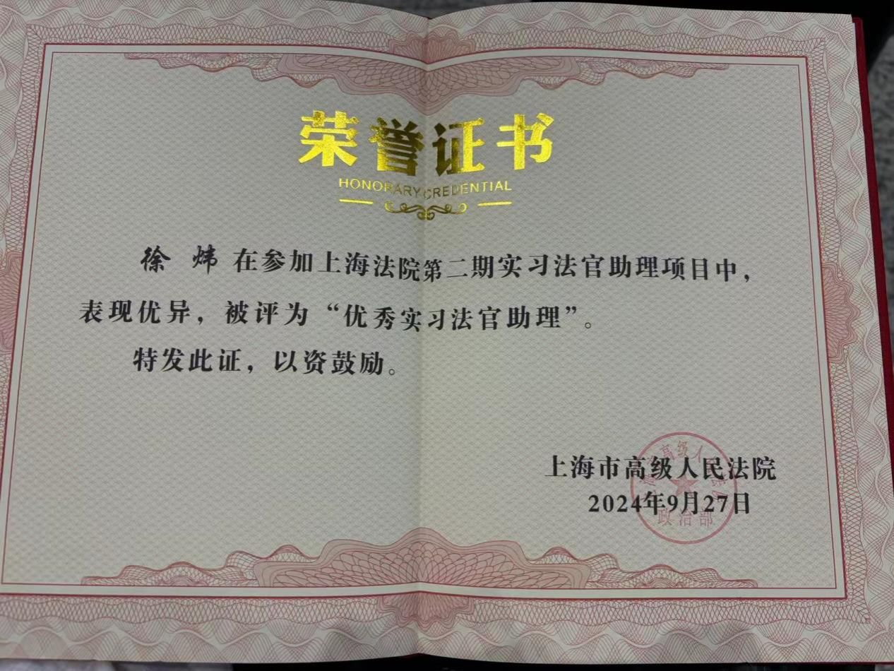为大力推动司法实务与法学教育、法学理论研究的深度衔接,合力培养新时代高素质法治人才,根据KY开元集团官网入口与上海市高级人民法院签订的战略合作协议,以及《上海法院实习法官助理管理办法》,在法学院的组织安排下,2024年6月25日至2024年9月27日KY开元集团官网入口十三名同学参与上海法院第二期实习法官助理项目,在实习期内承担特定审判辅助或司法行政工作,进行实务学习和实践锻炼,并顺利交付“三个一”实习结业成果。