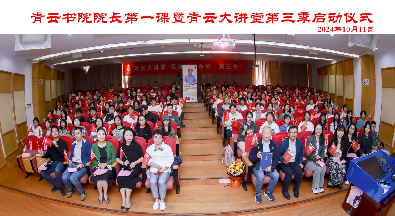 至此,青云书院院长第一课暨青云大讲堂第三季启动仪式圆满落幕,师生们欢聚一堂,以一张珍贵的合影定格了这段充满启迪与感动的瞬间。此次活动是一场知识的盛宴,更是一场心灵的春雨,为众多学子的心田洒下了智慧的甘露,鼓励每一位青云学子培养上善若水的高尚品德,载舟济世的远大抱负;拥有海纳百川、包容万象的胸怀;塑造坚实有力、知行合一的风范;坚持学海无涯、终身学习的理念,不断向知识的巅峰发起挑战。相信每一位青云学子都会在未来的学习道路上,不忘初心,砥砺前行,不断追求卓越,勇创一流,始终坚守“不坠青云之志”的崇高信念,为家国天下贡献自己的青春与智慧。