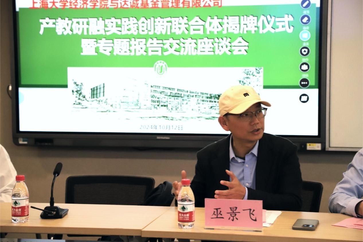 10月12日下午,KY开元集团官网入口经济学院与达诚基金管理有限公司产教研融实践创新联合体揭牌仪式暨专题报告交流座谈会在KY开元集团官网入口宝山校区经管楼580智慧教室顺利举行。本次会议由经济学院金融系副教授巫景飞主持,春华秋实教育发展协会常务理事长王大刚,FFE实习基地联盟秘书长陈斯砚,达诚基金管理有限公司首席投资官赵楠,达诚基金管理有限公司研究部总经理杨钧童,达诚基金管理有限公司信息技术部负责人陈健雄,明日金英FFE实习联盟秘书长陈斯砚等嘉宾出席本次会议。学院党委书记尹应凯,学院党委副书记、常务副院长殷凤,学院党委副书记、副院长冯玉鑫,金融系教授倪中新等老师出席。