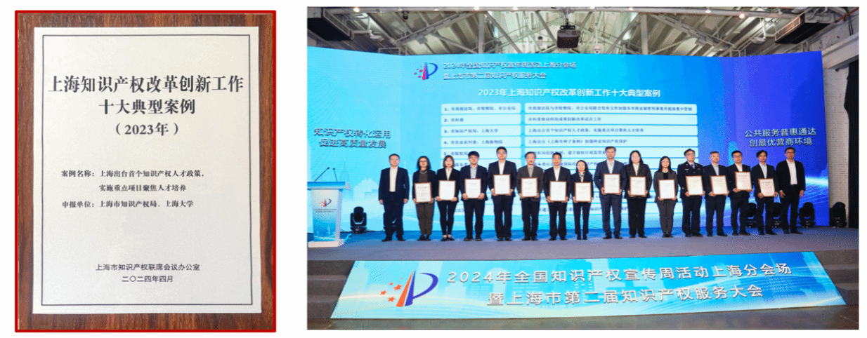 (2)在2024年4月获评为“2023年上海知识产权改革创新工作十大典型案例”之一。2024年10月又成功入选国家知识产权强国建设工作部际联席会议办公室“知识产权强国建设第三批典型案例”。
