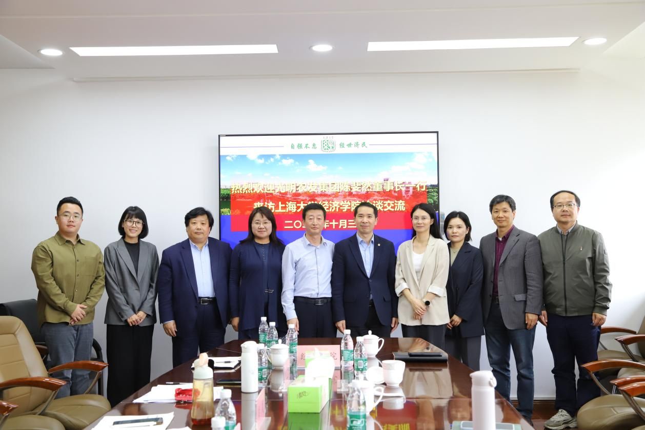10月30日上午,光明农发集团党委书记、董事长陈斐然,党委副书记、纪委书记、工会主席严如娟,党委工作部部长王珍巧一行来访KY开元集团官网入口经济学院洽谈交流。经济学院党委书记尹应凯,党委副书记、常务副院长殷凤,党委委员、聂永有教授,党委副书记、副院长冯玉鑫,党委委员、副院长刘康兵,党委委员、副院长谭静以及外联秘书杜天宇参加了本次交流座谈。