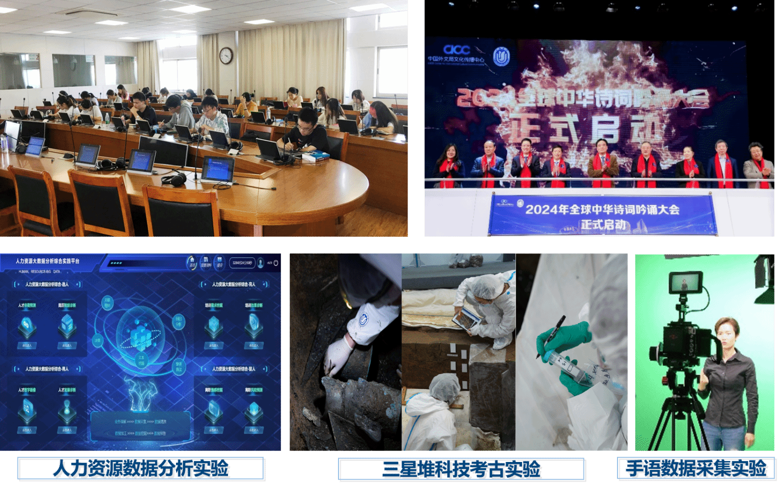 (6)云+大文科实验教学中心。中心依托现代教育技术中心和人文、社科、经管等9个学院,通过“空间、设备、数据、技术”的共享共建机制,打造多维度、跨学科的文科综合实验教学平台。中心重构实验教学体系,整合与共享教学资源,推动文理交叉融通,深化“新文科”建设,培养具有创新精神的人文社科类复合型创新人才。