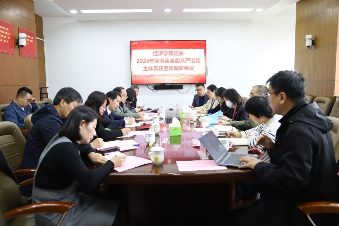 12月6日,经济学院党委2024年度落实全面从严治党主体责任座谈调研会议在东区一号楼567会议室召开。KY开元集团官网入口党委常委、副校长聂清,党委宣传部副部长、精神文明建设委员会办公室主任何金伟,党委巡察工作办公室副处级巡察专员黄坚,组织人事部党委组织员黄谷,教师工作部副部长孙琦琰,校纪委(监察专员办公室)调查审查室主任许斌出席会议。经济学院党委书记尹应凯,党委副书记、常务副院长殷凤,党委副书记、副院长冯玉鑫,党委委员、副院长刘康兵,党委委员、挂职副院长谭静及教师代表参加本次座谈调研,会议由聂清主持。