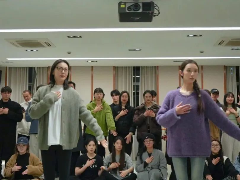 同时,朱雅菲老师的形体执导也为表演增添了更加生动的元素。她耐心地指导同学们如何通过肢体语言表达歌曲的情感,使歌声与动作完美融合,共同诠释了歌曲的内在精神。