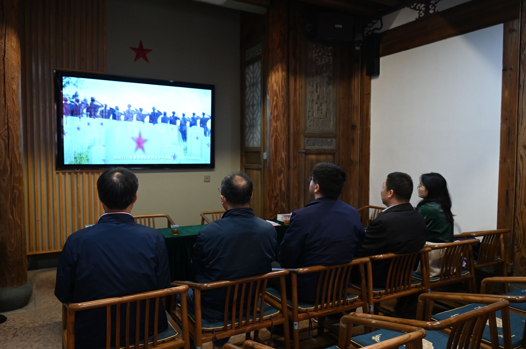 与会人员实地参观了蔡威事迹展陈馆,现场向蔡威烈士立像敬献花篮,并观看了《寻剑》纪录片。在蔡威事迹展陈馆,参加人员通过重温入党誓词,重忆入党初心。