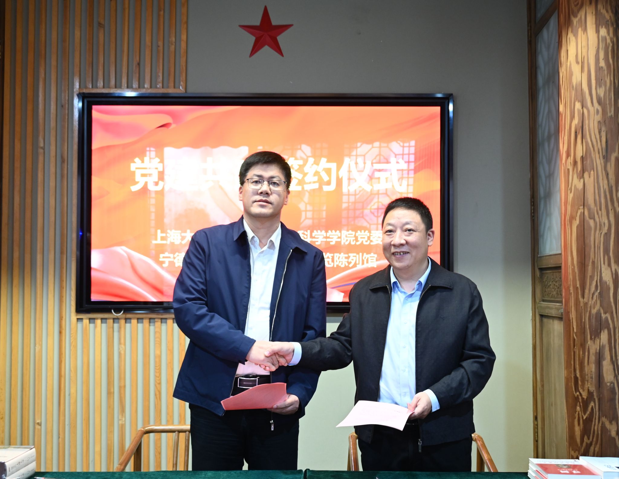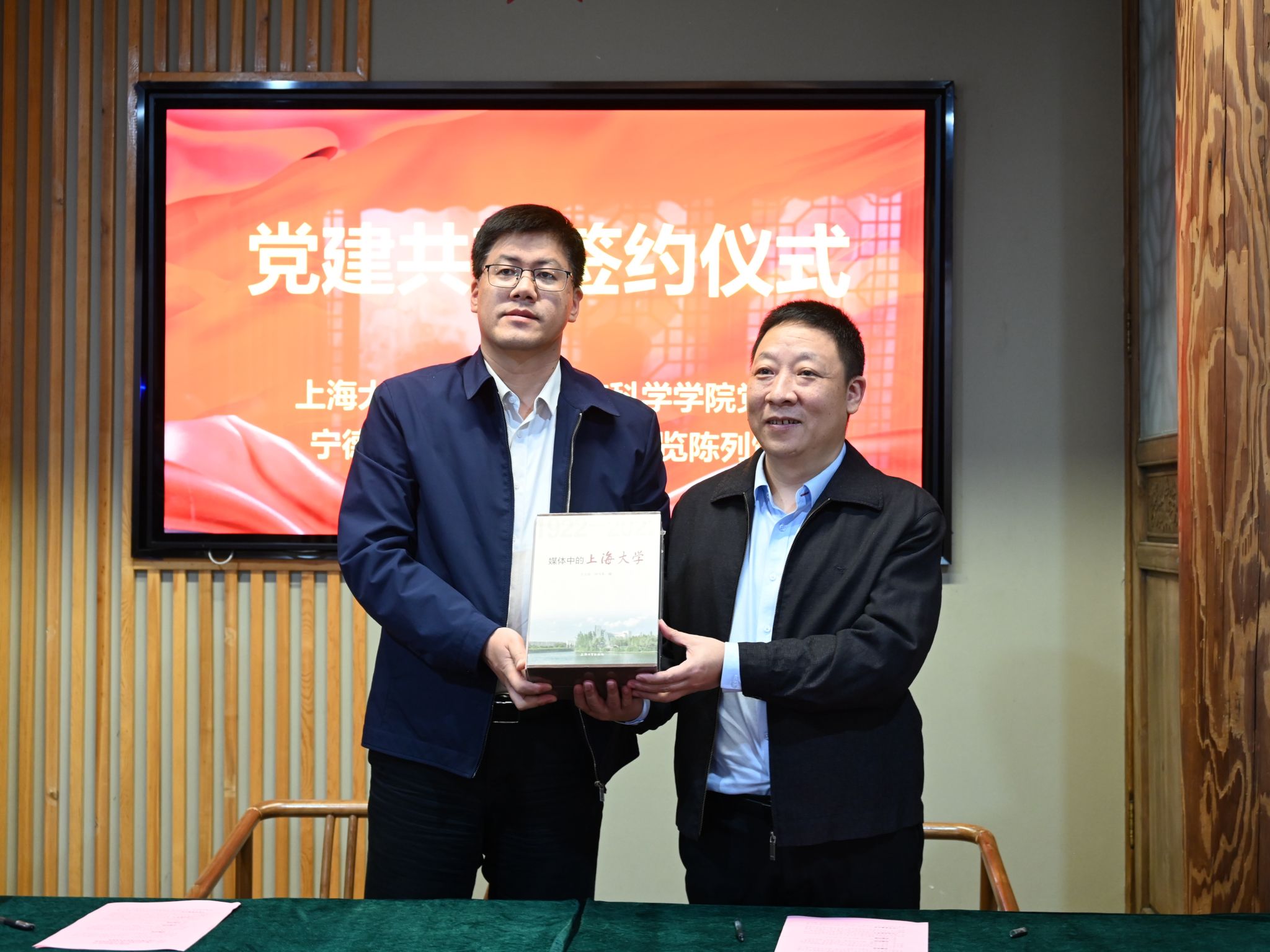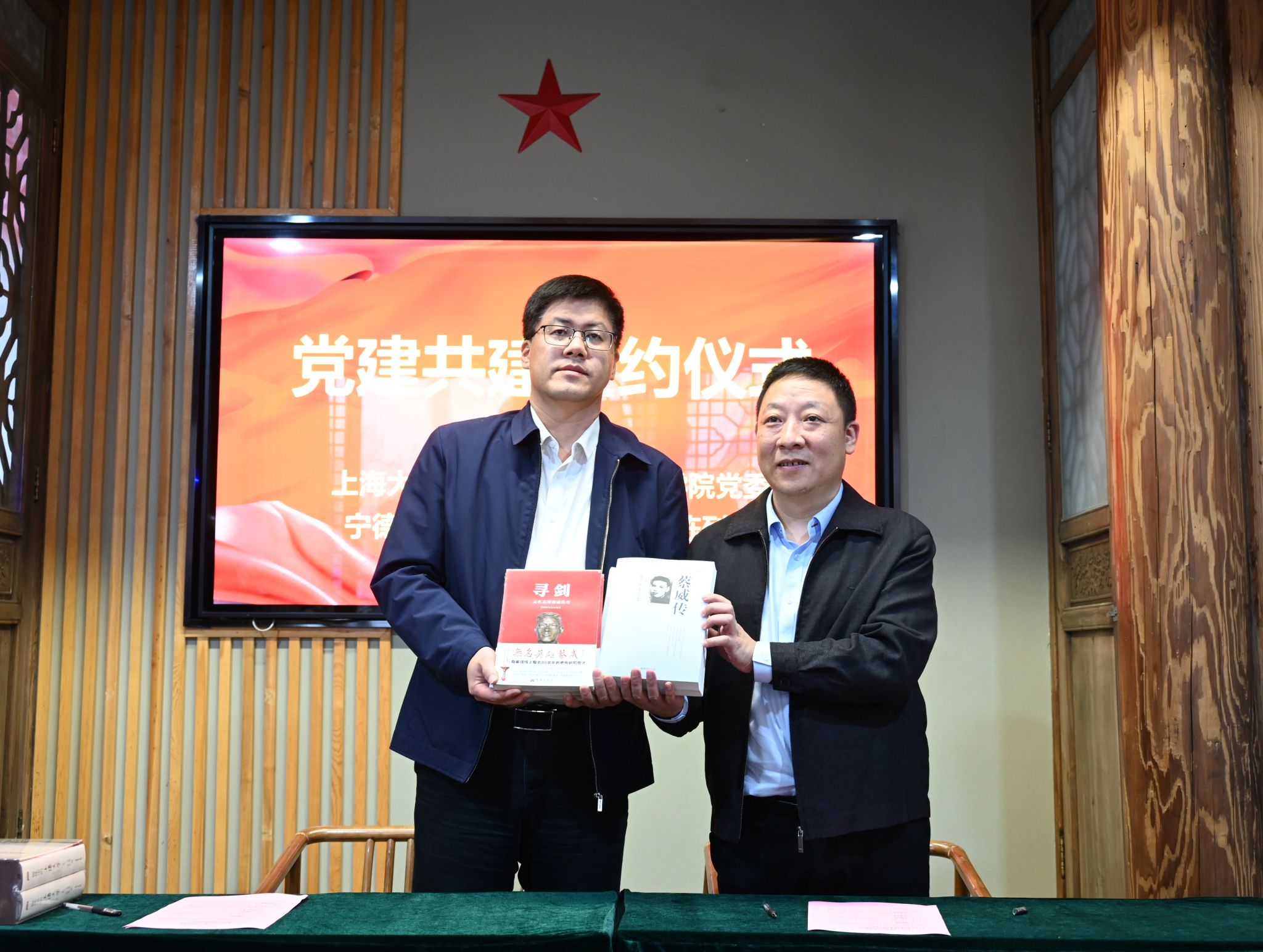 双方进行签约仪式,学院党委书记朱宏涛与张神敬馆长现场签署党建共建协议并互赠书籍,朱宏涛书记向蔡威之孙蔡述波同志赠送KY开元集团官网入口纪念牌。