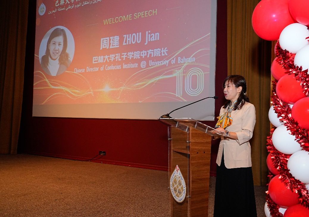 巴林大学孔子学院中方院长周建教授回顾了孔院十载历史与成就。她指出,十年来,巴林孔子学院在推动汉语教学、促进中巴友谊以及加强教育合作方面取得了显著成果,并展望未来将继续深化中巴合作,共同推动中外文化的相互理解和交流。