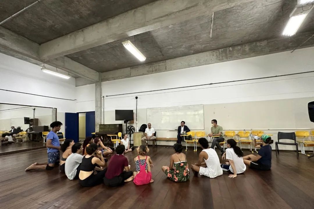 观摩课程文化交流左右滑动查看更多访问期间,张斌副院长和王天翼老师还观摩了巴伊亚联邦大学戏剧学院、舞蹈学院的专业课程。他们参加了Etienne Decroux的形体哑剧技巧课程,这门课程强调通过身体语言来表达情感和故事,让两位老师对巴西的表演艺术有了更深入的了解。此外,他们还观摩了毕业大戏《仲夏夜之梦》的排练课程,以及舞蹈学院的巴西非洲舞蹈工作坊,这些课程不仅展示了巴西舞蹈的多样性,也加深了他们对巴西文化的认识。