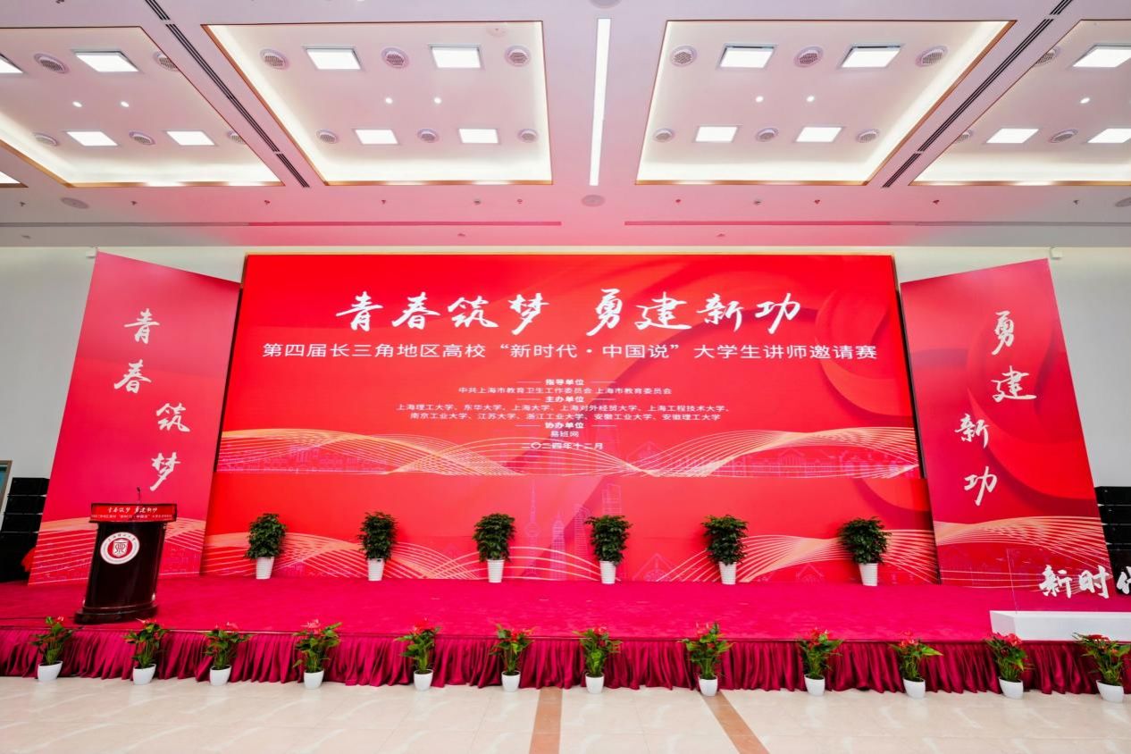 12月19日,“青春筑梦 勇建新功”第四届长三角地区高校“新时代·中国说”大学生讲师邀请赛在上海理工大学举办。本次比赛由上海市教卫工作党委、上海市教委指导,易班网协办,来自长三角地区的10所高校共同举办,是深化“课程思政”教育教学改革、促进长三角地区学生思政工作一体化发展的特色品牌活动。