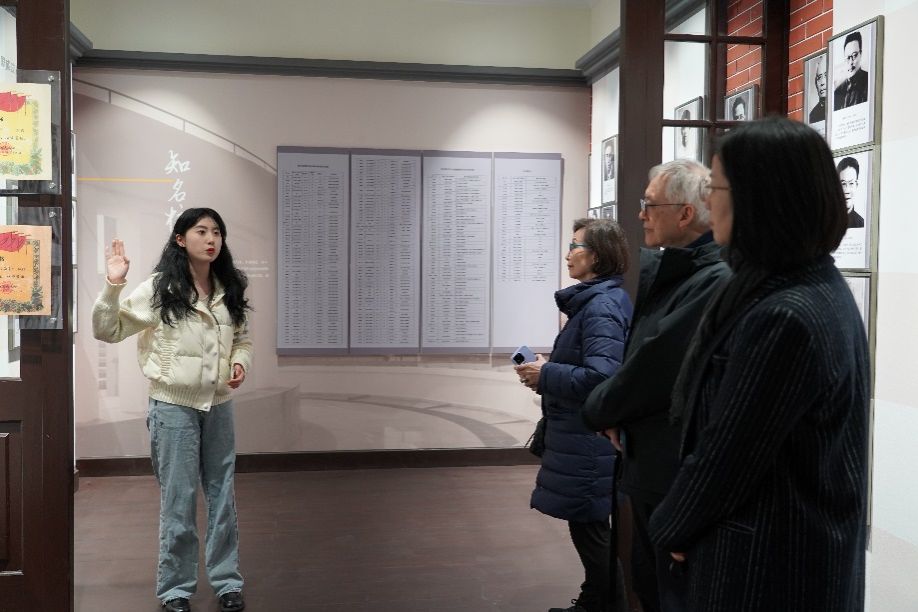 在钱伟长纪念馆,大学生讲解员向嘉宾们讲述了钱伟长老校长为响应国家发展需要,舍文从理、赴国外深造、毅然返国、投身祖国科研与教育事业的一系列故事。通过参观钱老手稿、著作及证件等珍贵展品,嘉宾与师生重温了钱伟长老校长在教育与科技创新上付出的心血与努力。