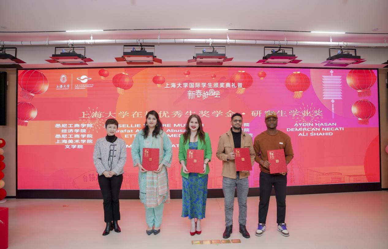 展示环节之后,领导们分别为在上海市九子大赛,国际学生中秋中文诗歌朗诵比赛,国际学生学业奖、实践之星、学术之星、知华传播奖评选中获奖者现场颁发了获奖证书。