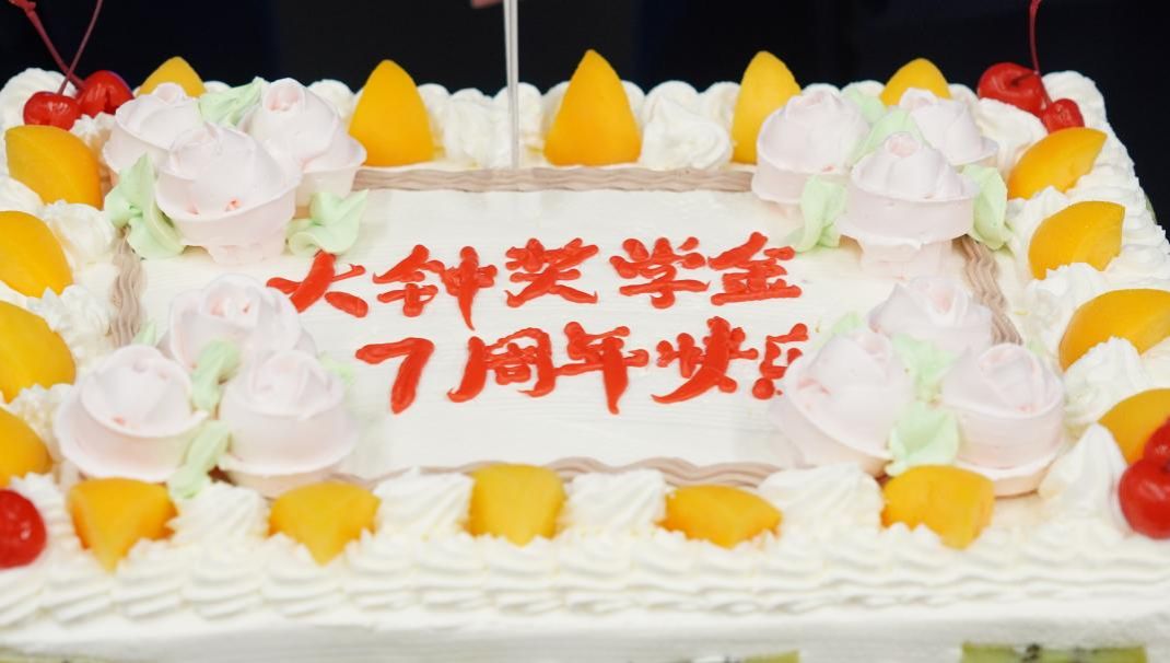 在“大钟奖学金”7周年之际,学院特别准备了庆祝蛋糕,与新老“大钟班”成员共同分享7周年的甜蜜。张大钟学长与彭明霞老师共同上台分享蛋糕,庆祝学院“大钟班”成立7周年。